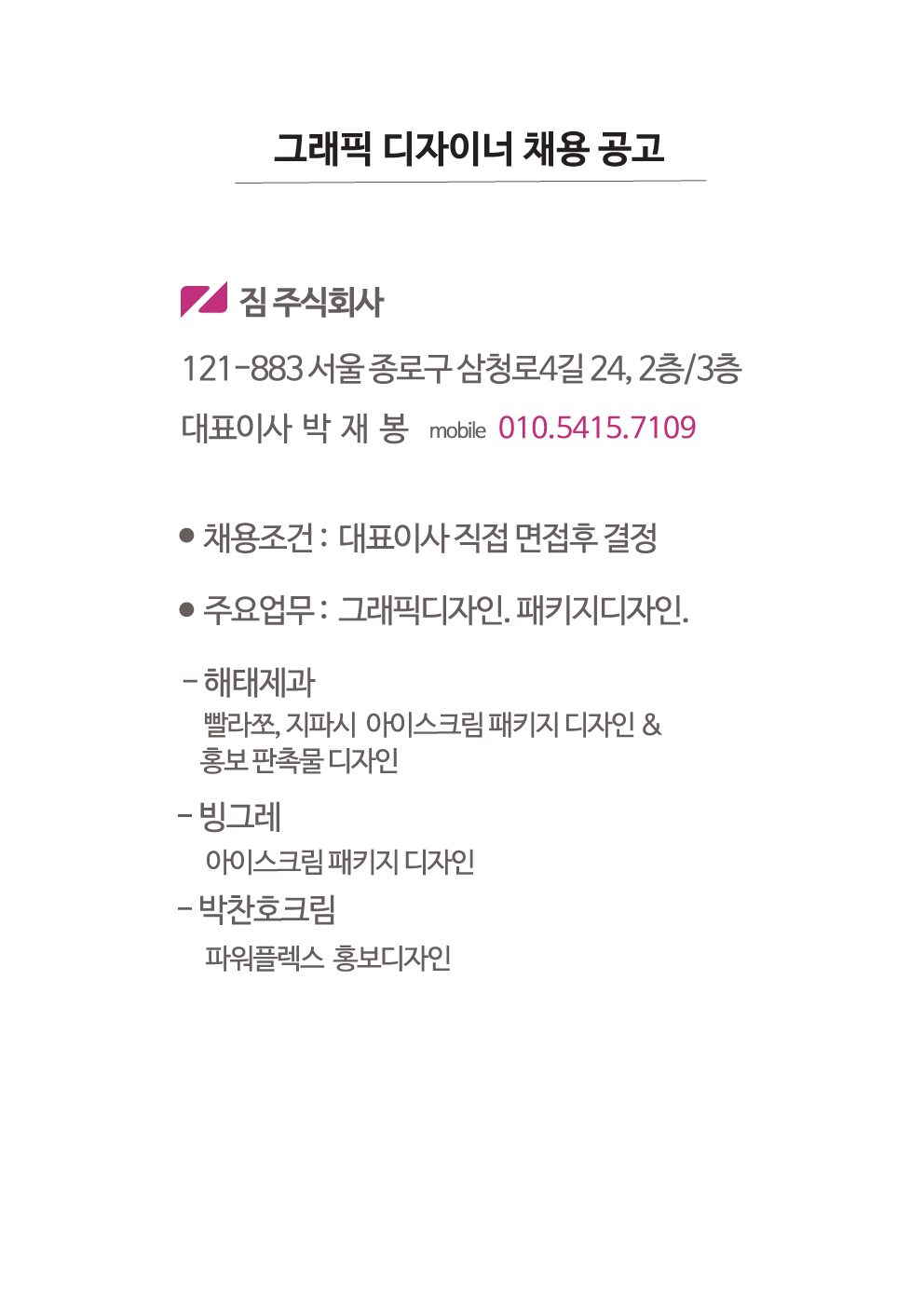 짐 주식회사에서 그래픽 디자이너를 모집합니다.