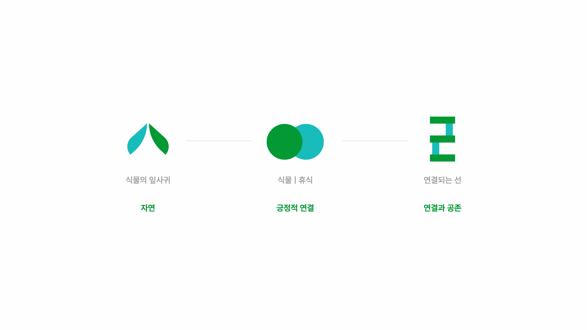 심볼에서 곡선을 사용한 것을 이용하여 직선과 곡선의 만남으로 정리된 느낌과 심볼의 의미를 더한 형태로 서로 만나 이어지는 ‘ㅅ’ 의 중심부에 공간을 주어 휴식의 의미를 더했습니다.