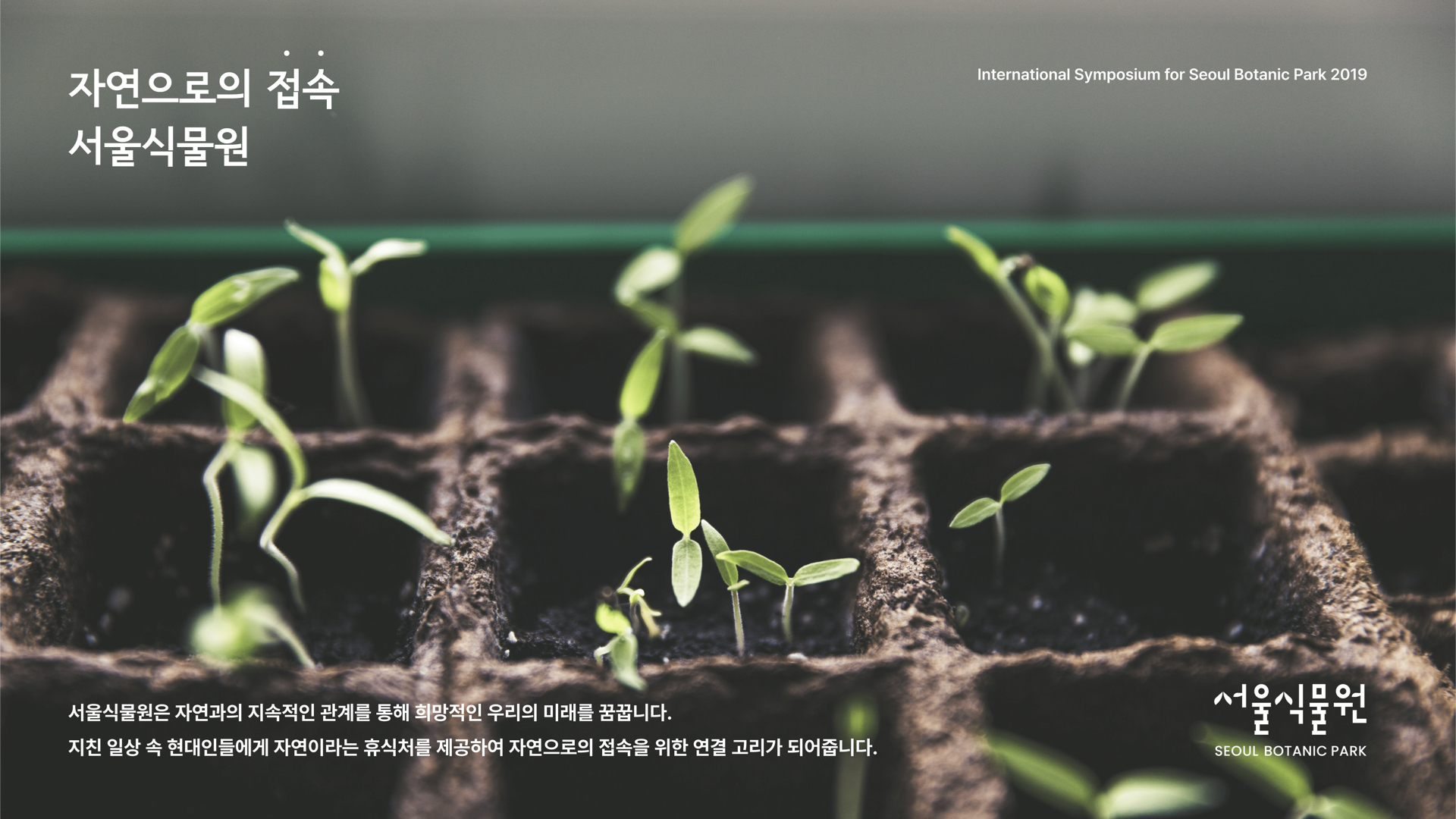 서울식물원은 국내 최초의 도시형 식물원이자 자연의 지속적인 관계를 위한 연결의 공간으로 복잡한 도심 속에서 진정한 휴식을 느낄 수 있으며 일상 속에서 우리와 함께 늘 옆에 공존하며 언제든 휴식할 수 있는 공간임을 표현했습니다.