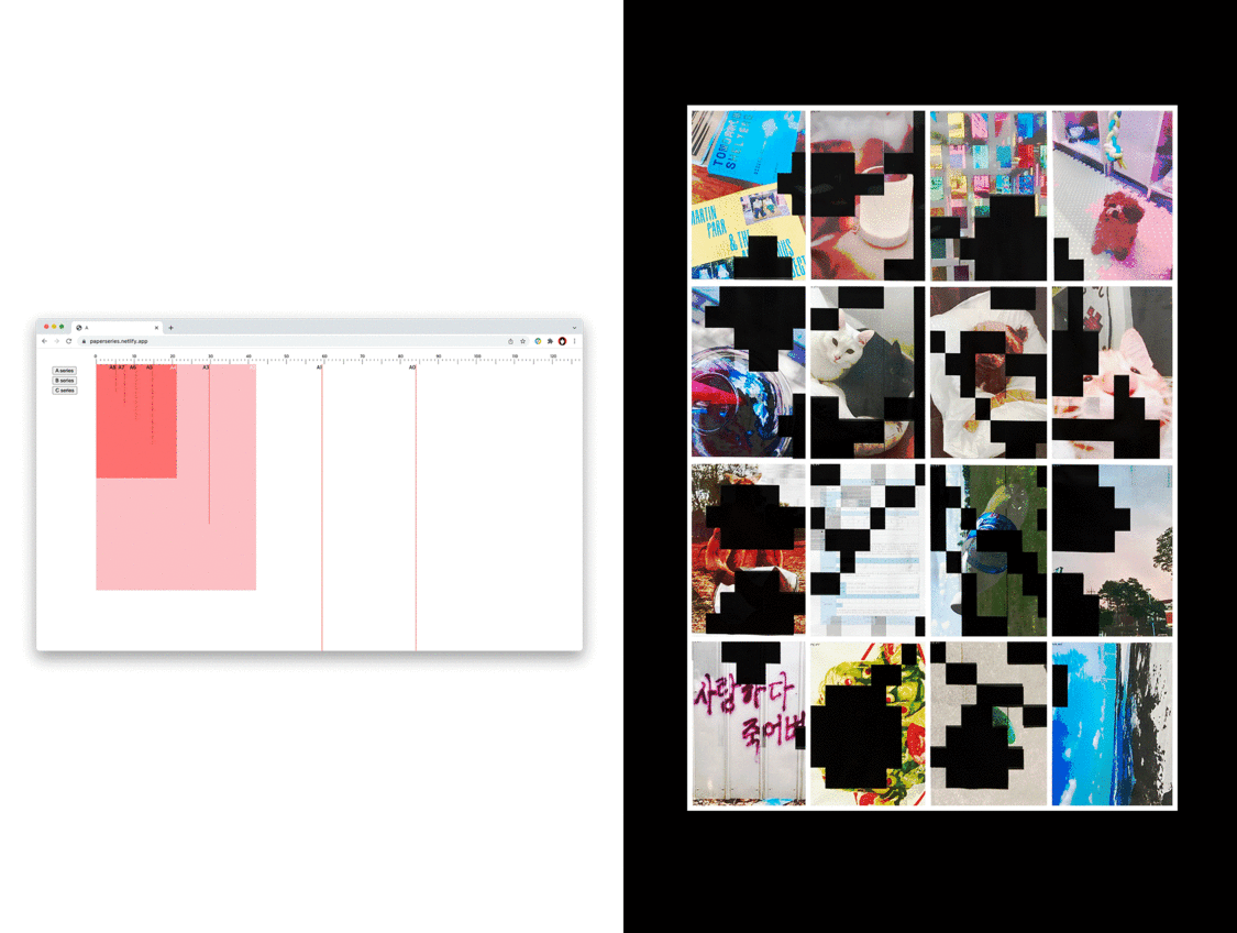 고정된 지면으로서 가장 흔하게 볼 수 있는 A4용지는 1:1.414의 비율로 자재 절약을 위해 고안된 크기이며, 미국 등의 일부 국가를 제외한 전 세계에서 널리 사용된다. 이런 A4용지를 다양한 관점으로 바라보며, 다른 매체들과 연관시키거나 전환하는 과정을 탐구했다.