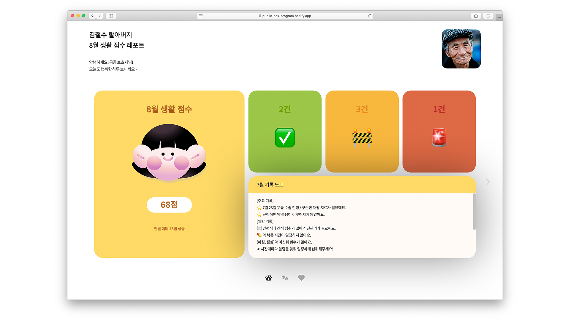 Public NOK Program은 과도한 업무에 지친 공공 보호자의 업무 효율을 높여줌과 동시에 더 세밀한 고령자 케어가 가능하도록 한다.