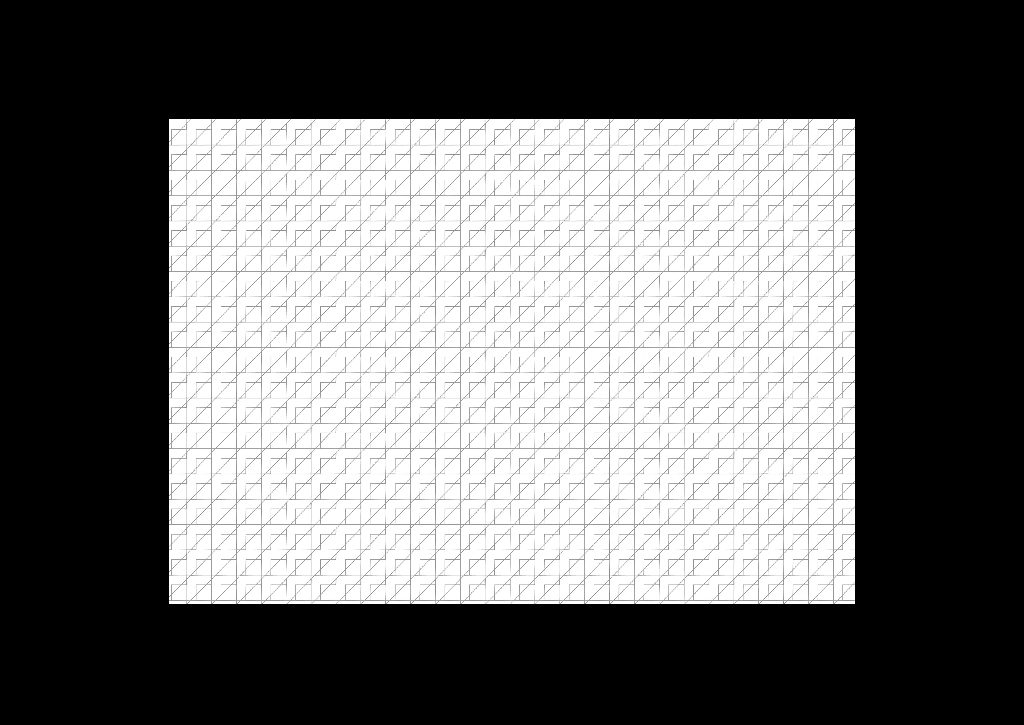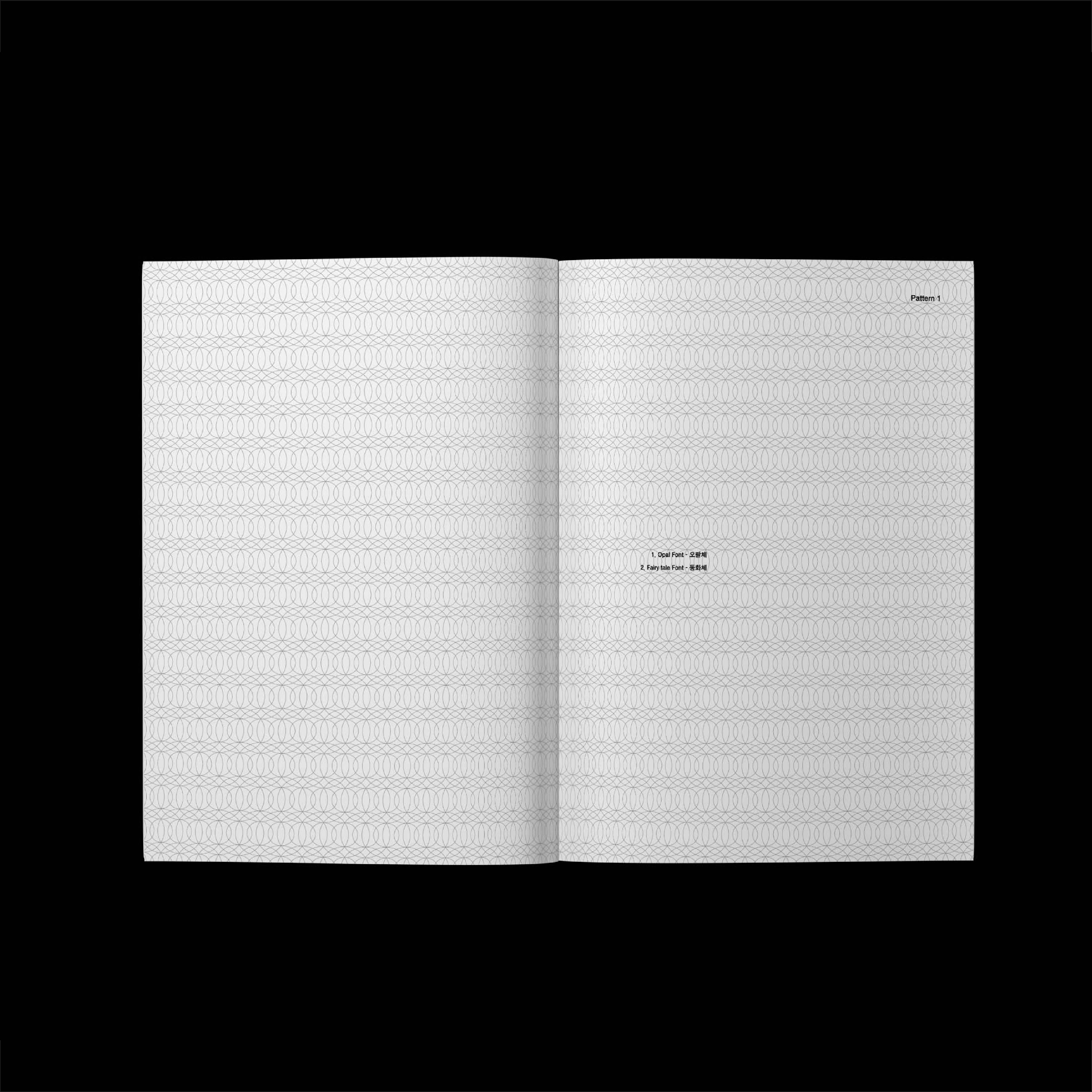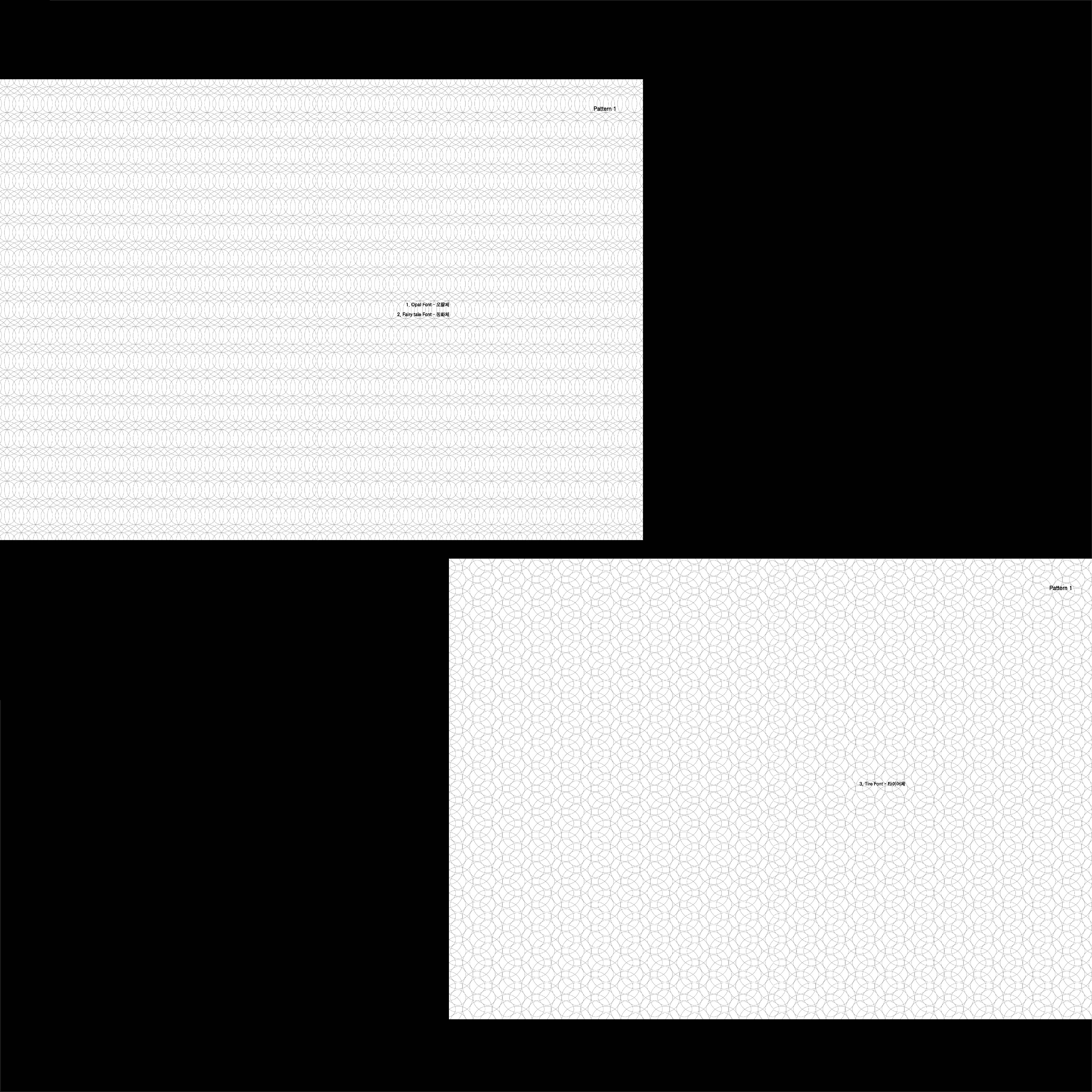 30여 개의 모듈 디자인 테스트를 진행한 후 선정한 '바람개비 '모듈로 십여 개의 패턴화를 진행했다. 만든 패턴은 펜을 사용해 곧바로 글자를 그릴 수 있는 환경을 위해 모눈종이의 형태로 옮겼다. 그중 두 가지 패턴이 선별되어 국문 1종, 영문 1종, 숫자 1종, 총 3개의 각기 다른 활자체를 제작했다.