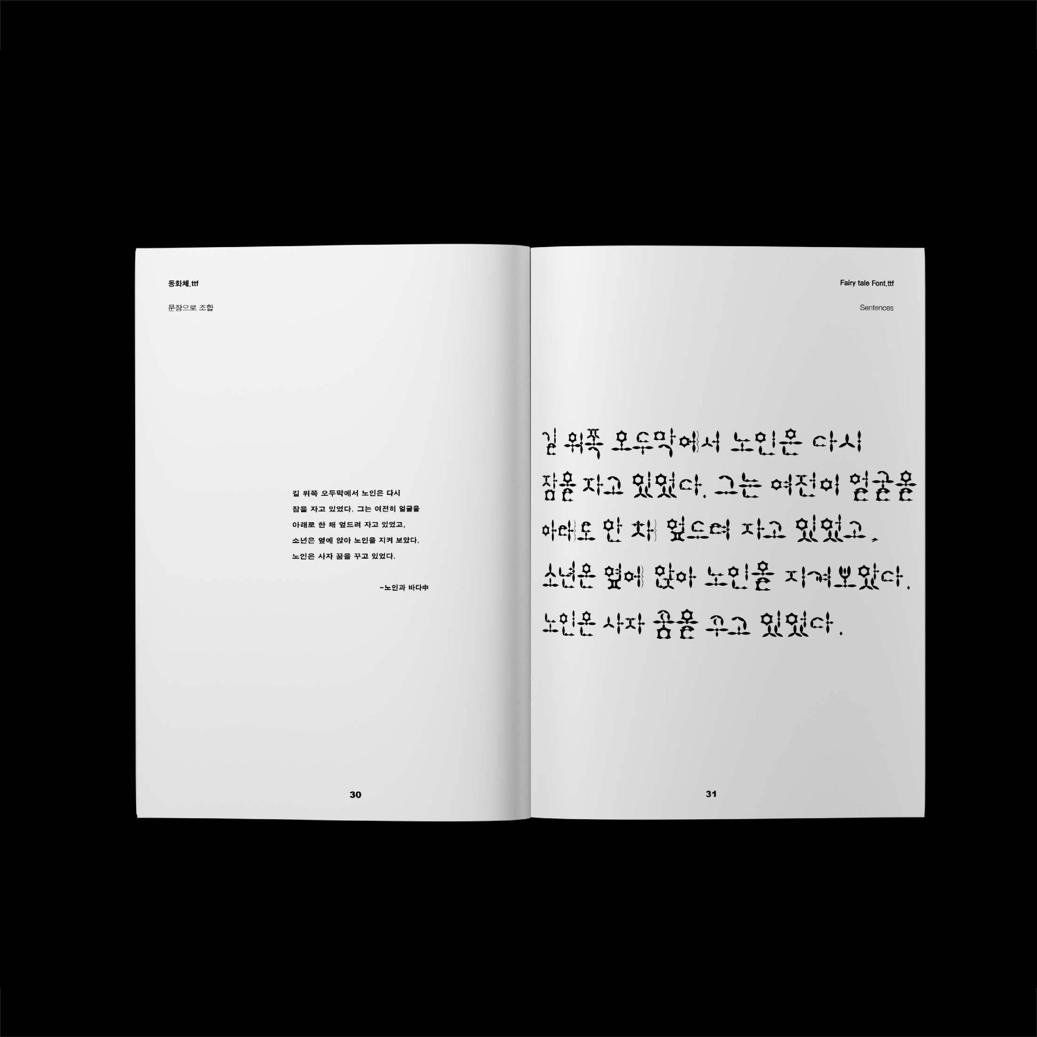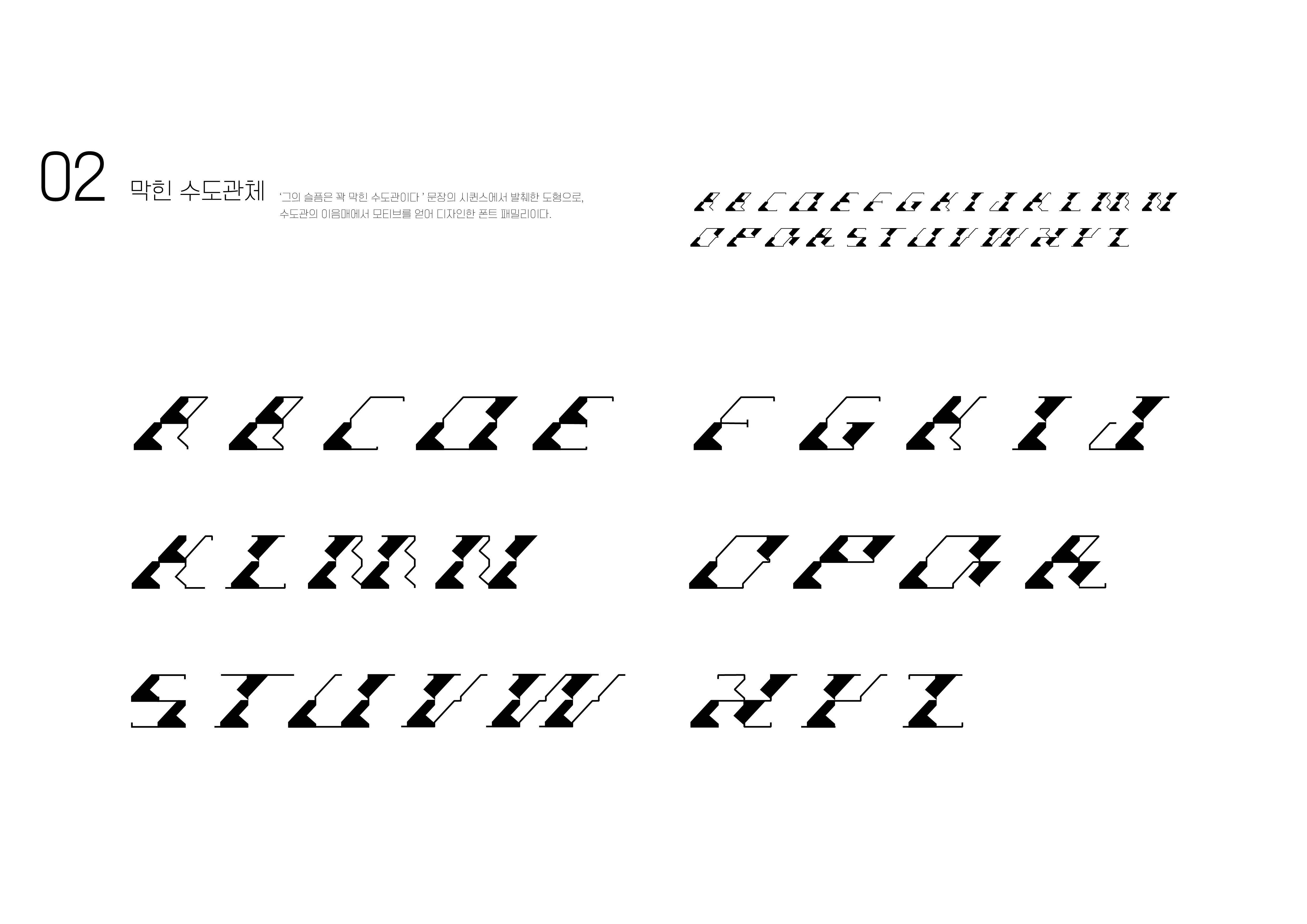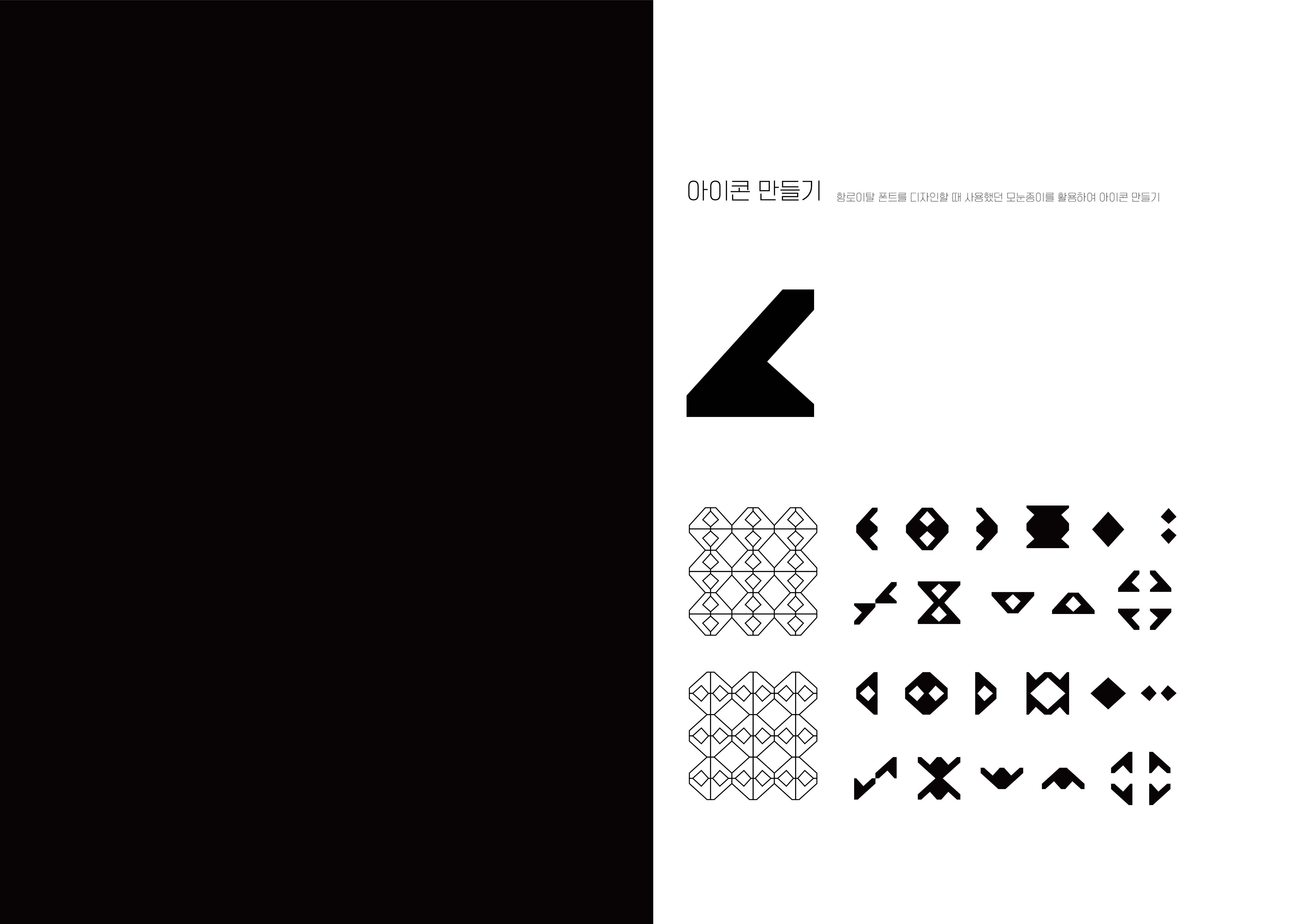우연 속에서 도형을 만들어내고, 그 도형을 활용해 시퀸스와 패턴을 만들고, 그 복잡한 패턴 속에서 핵심을 파악하고 그 속에서 이어지는 규칙을 찾아 폰트를 만들었습니다.
