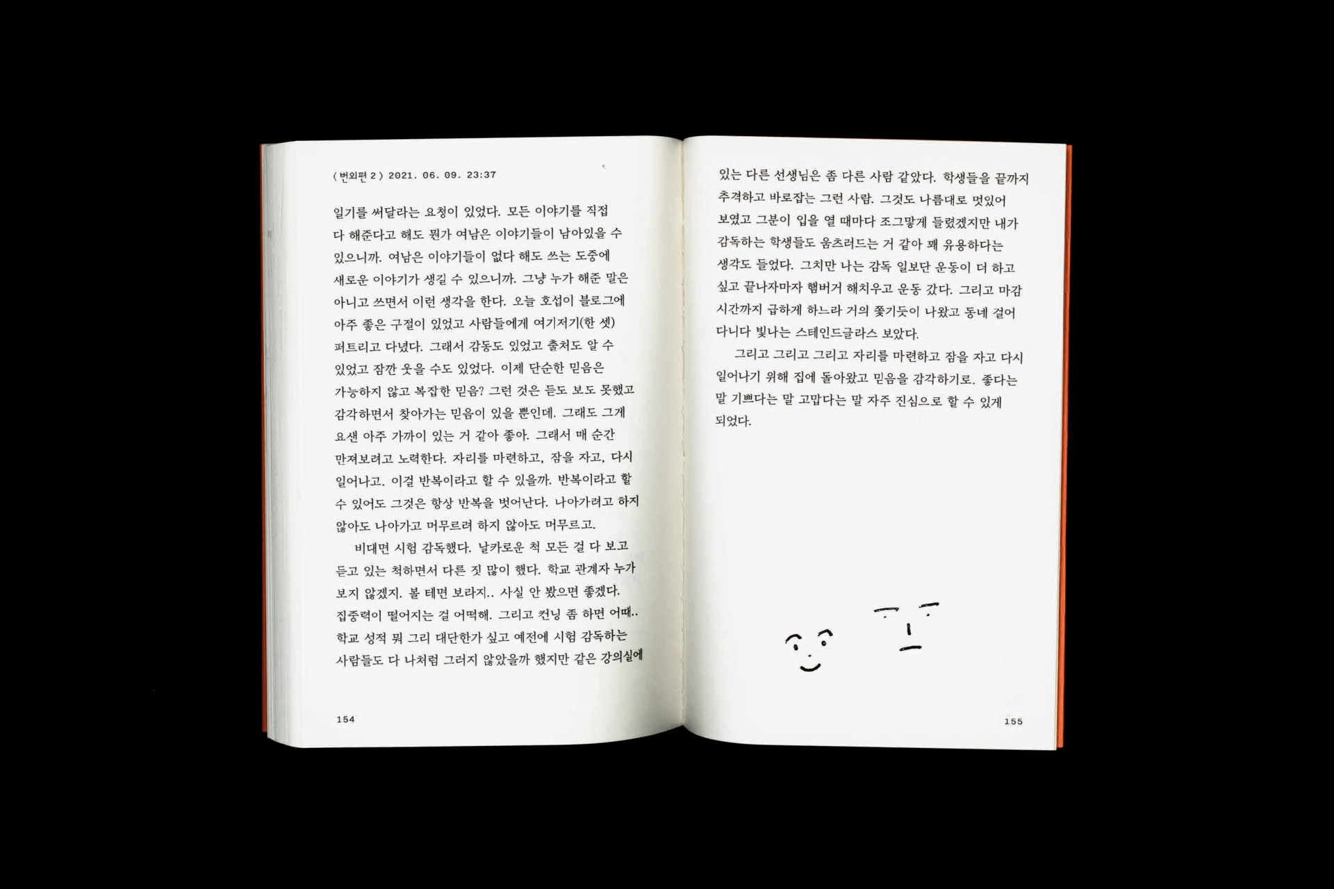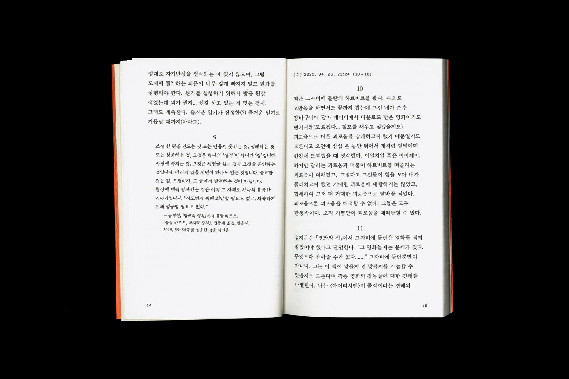 김헵시바와 문윤기의 프로젝트 출판사 레이지북스의 첫 책 『즐거운 일기』는 문윤기가 2020년 4월부터 5월까지 작성했던 블로그 일기를 엮은 책이다. 단상과 텍스트 인용, 영상 이미지 그리고 하루하루의 일상이 기록되어 있다. 본문, 작성 시간, 인용문을 각자 다른 질감으로 조판해 블로그의 매체적 특성을 지면에 어울리는 방식으로 옮기려 했다. 김헵시바 hepzibakim@gmail.com @hepzzzzi