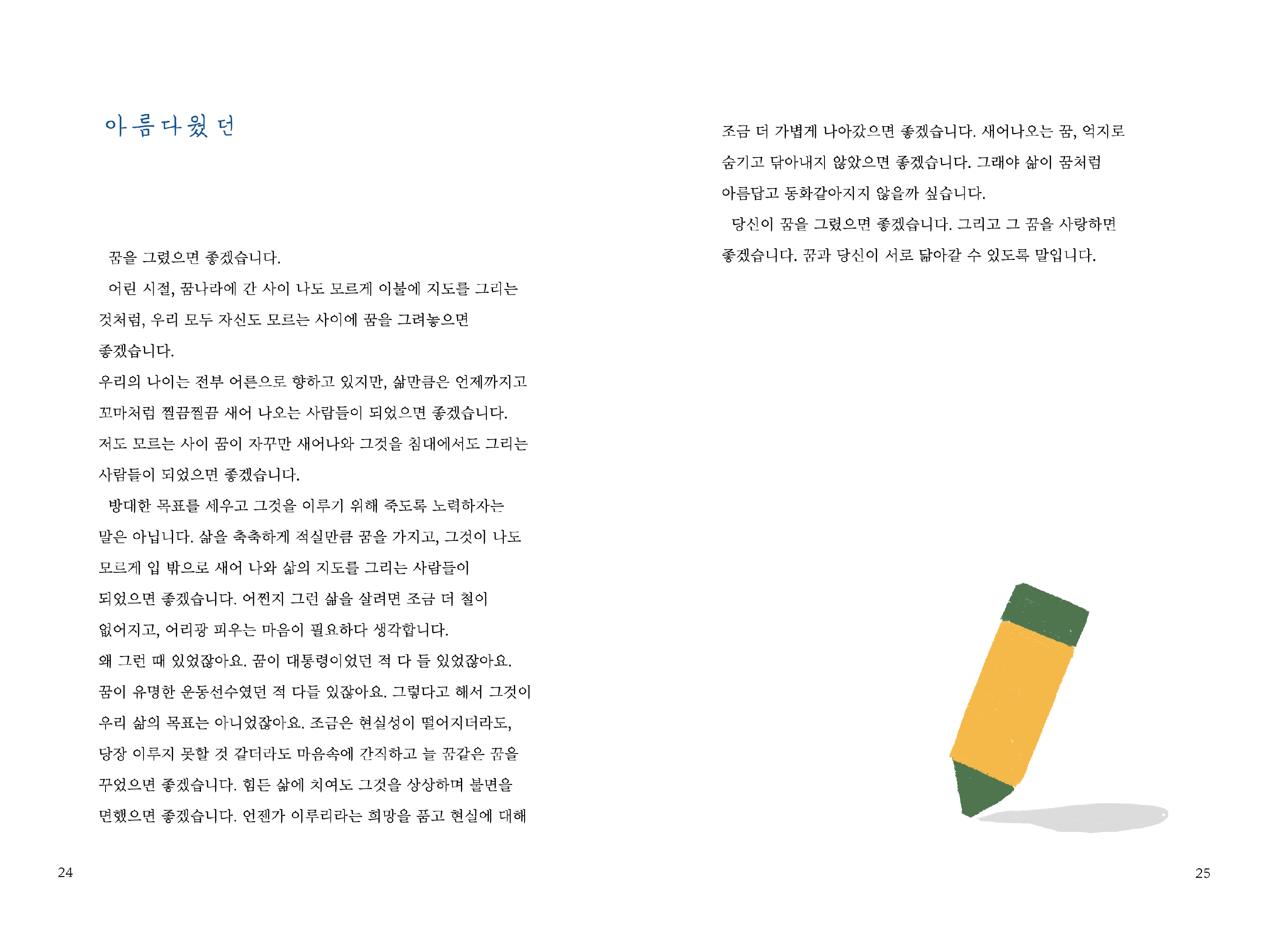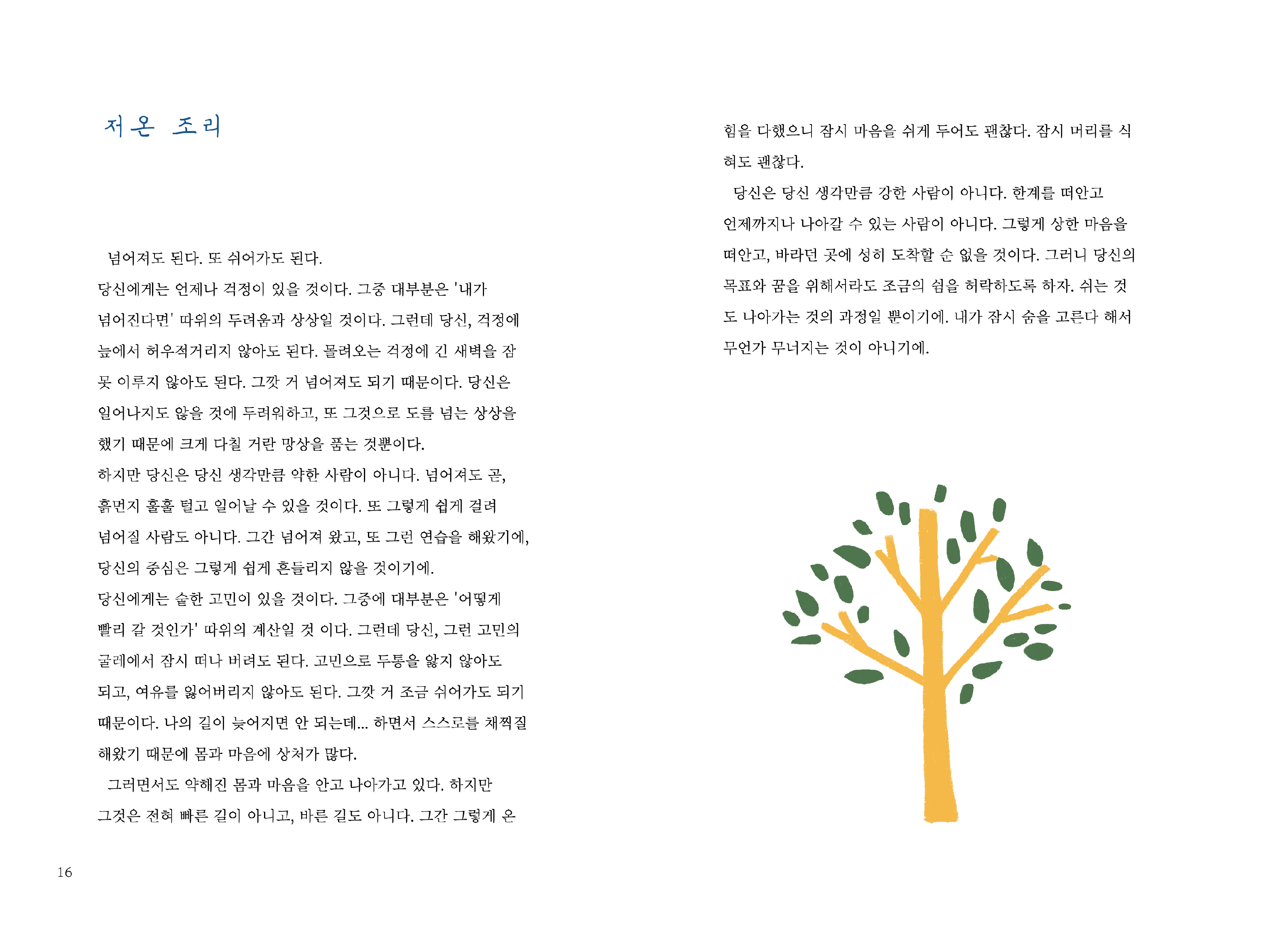 전자책 또한 사용한 일러스트와 비슷한 컬러로 챕터 제목을 써서 포인트를 주고, 모바일 환경에서 읽기 편한 폰트를 사용하여 본문을 만들었다.