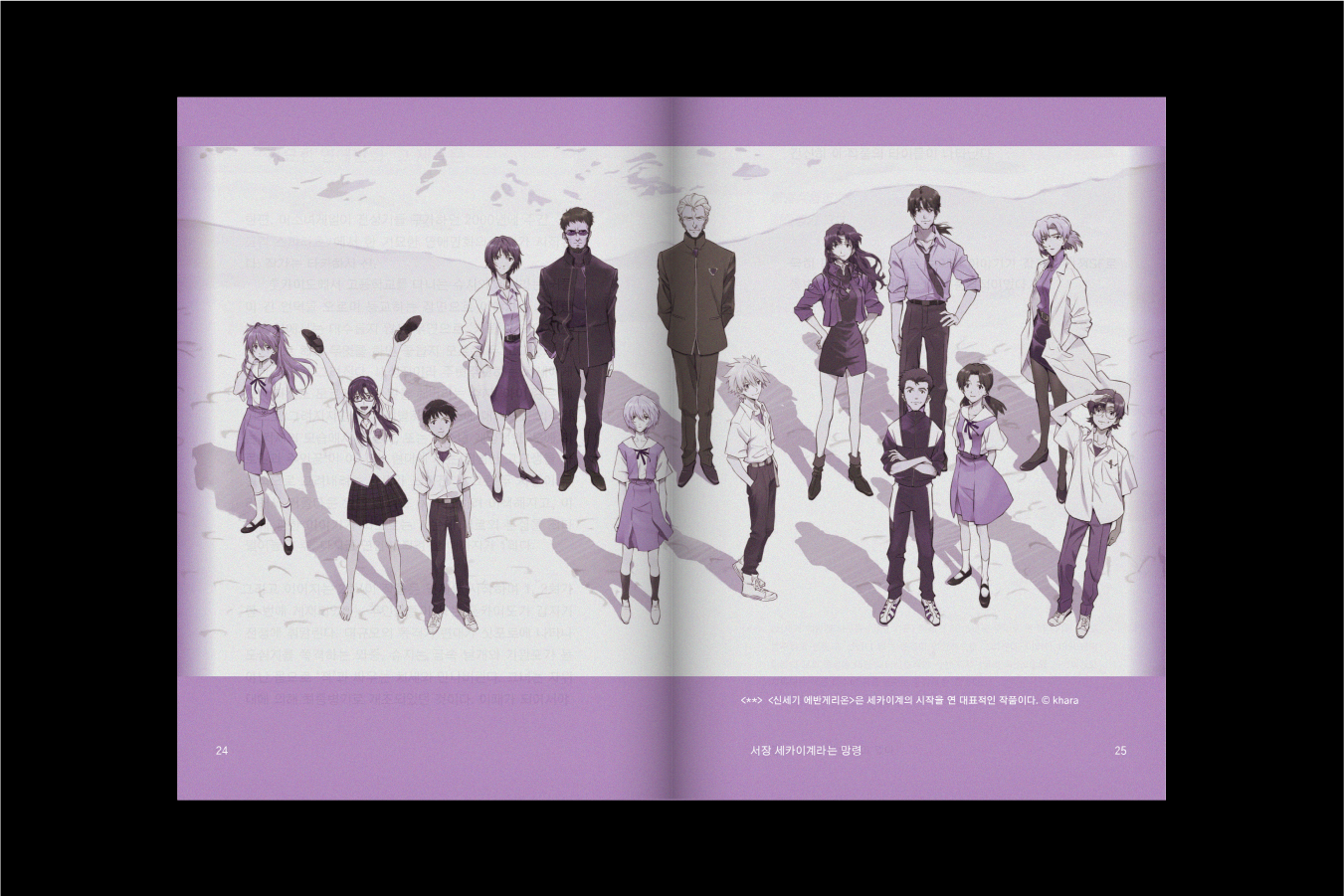 ‘신세기 에반게리온’을 필두로 풀어나가는 ‘세카이계’ 라는 현상을 심오하지만 아름답고 비밀스러운 보라색으로 다듬어 긴장감 있게 리디자인 한 결과물!