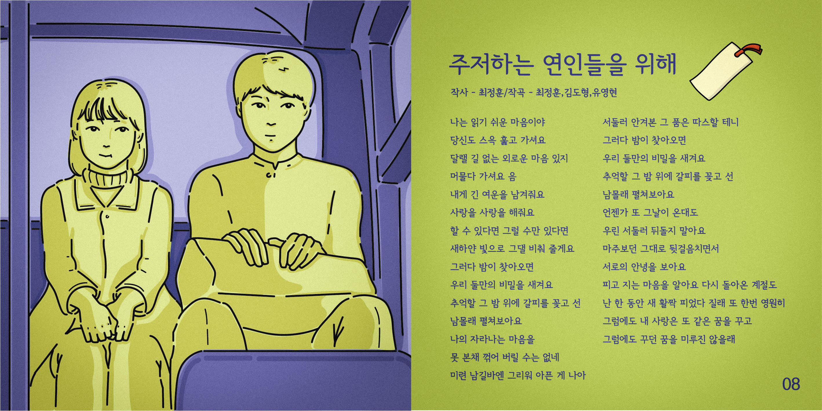 그룹사운드 잔나비의 앨범 '전설'을 리디자인 하였다. 수록곡에 어울리는 색과 일러스트로 잔나비의 노래를 재해석해 보았다. 김나래 4648nr@naver.com