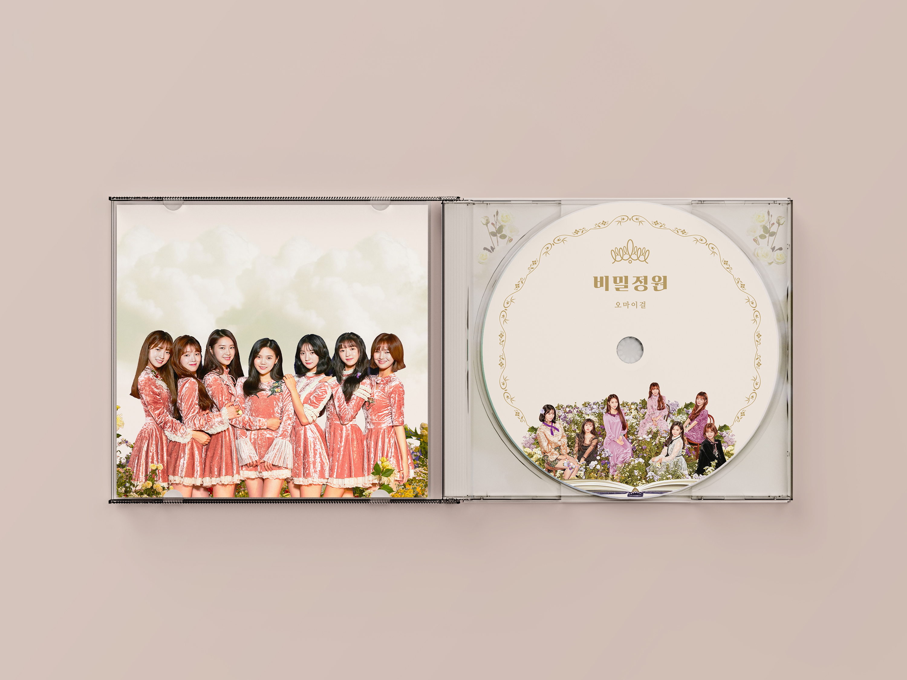 오마이걸 <비밀정원> 앨범의 리디자인이다. 앨범을 분석한 후 '성장'이라는 키워드와 잘 어울린다고 생각하여 북클릿의 페이지를 넘기면 넘길수록 새싹이 꽃이 되는 과정을 보여주기도 하고, 앨범의 전체적인 디자인은 신비로운 동화책 느낌과 화사한 분위기로 연출했다.