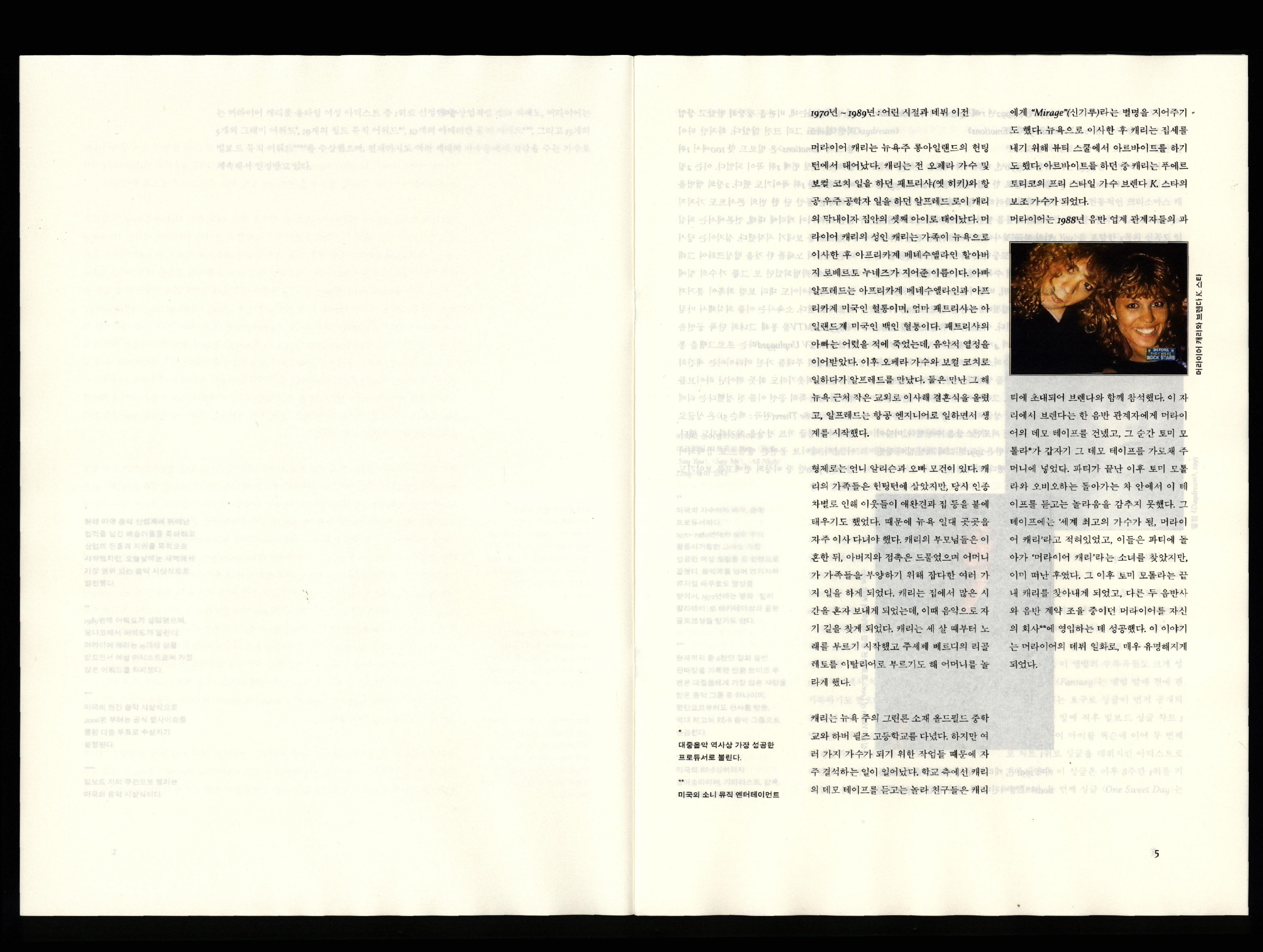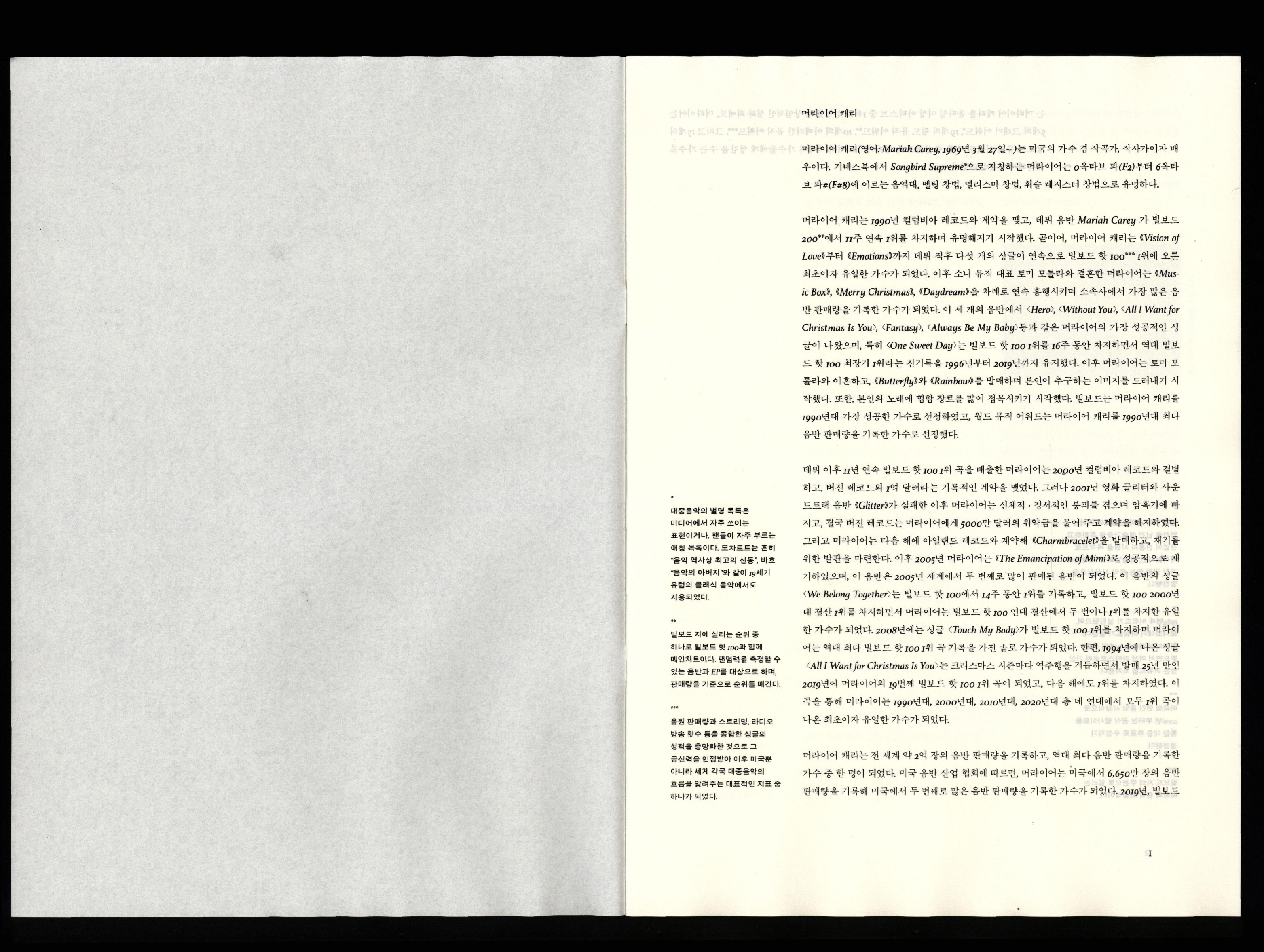 두 서체의 굵기, 세리프의 유무에 따른 차이는 정보 영역과 샘플 텍스트에서 모두 드러난다. 제작사, 제작자, 출시 연도, 샘플 텍스트 등 양옆으로 서로 동일한 정보 요소를 사용해 구성했기 때문에, 각 서체의 조형적 성격과 인상이 더욱 선명하게 대비된다.
