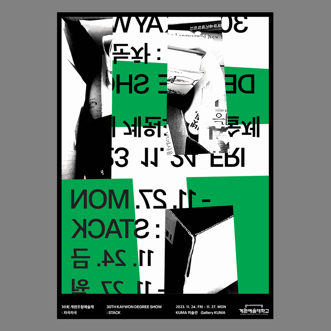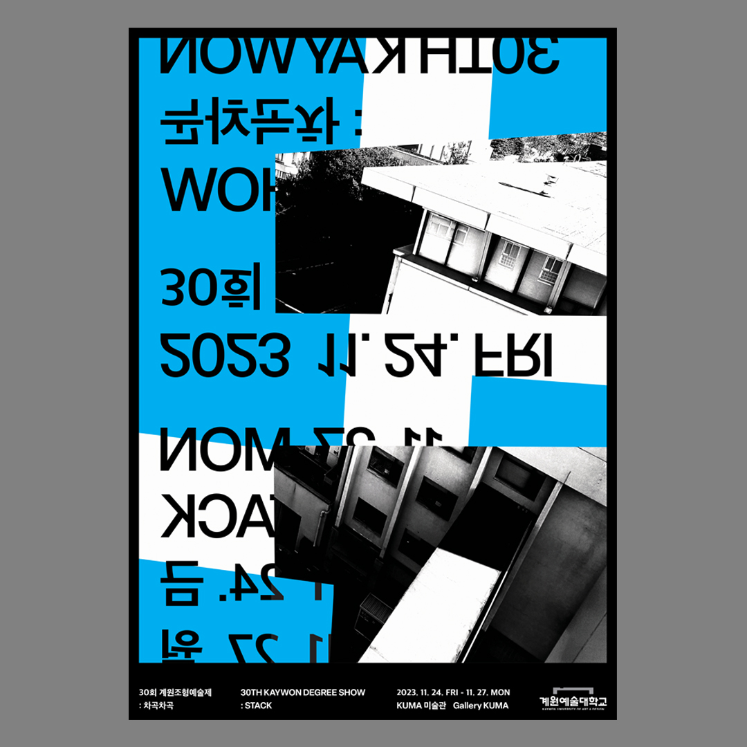 연결과 단절이라는 키워드로 제30회 계원조형예술제 포스터와 프로세스 북을 디자인하였다. - 졸업을 앞둔 학우들은 학위를 마치고 본교와의 단절과 새로운 세상으로의 연결을 경험한다. 이제 개인을 구성하는 세상은 무한할 것이다. 포스터 속 유기적으로 연결된 본교 건축물은 유실된 공간을 내포함으로써 연결과 단절, 그 접점에 서 있는 개인에게 무한공간의 가능성을 질문한다. - 계원예술대학교 사진 촬영 * 100장 포스터 초안 디자인 * 30장 디자인 빌드업 * 10장 최종 3장 셀렉 및 프로세스 북과 영상 제작 성은지 @ordy_sasha HTML 삽입 미리보기할 수 없는 소스