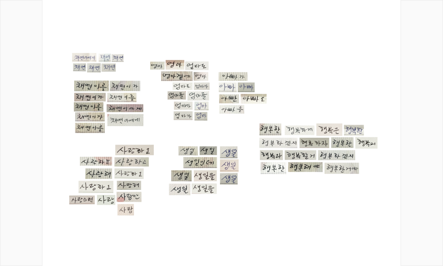 엄마의 편지에는 ‘언제나 항상 네 편이야.’라며 나의 삶을 응원해주는 말이 담겨있었다. 나의 일상과 마음을 담는 블로그에 '혜석체'를 사용함으로써 나의 마음을 정리하고, 응원을 되새기고, 위로를 받을 수 있다는 의미를 담아 제작한 서체이다.