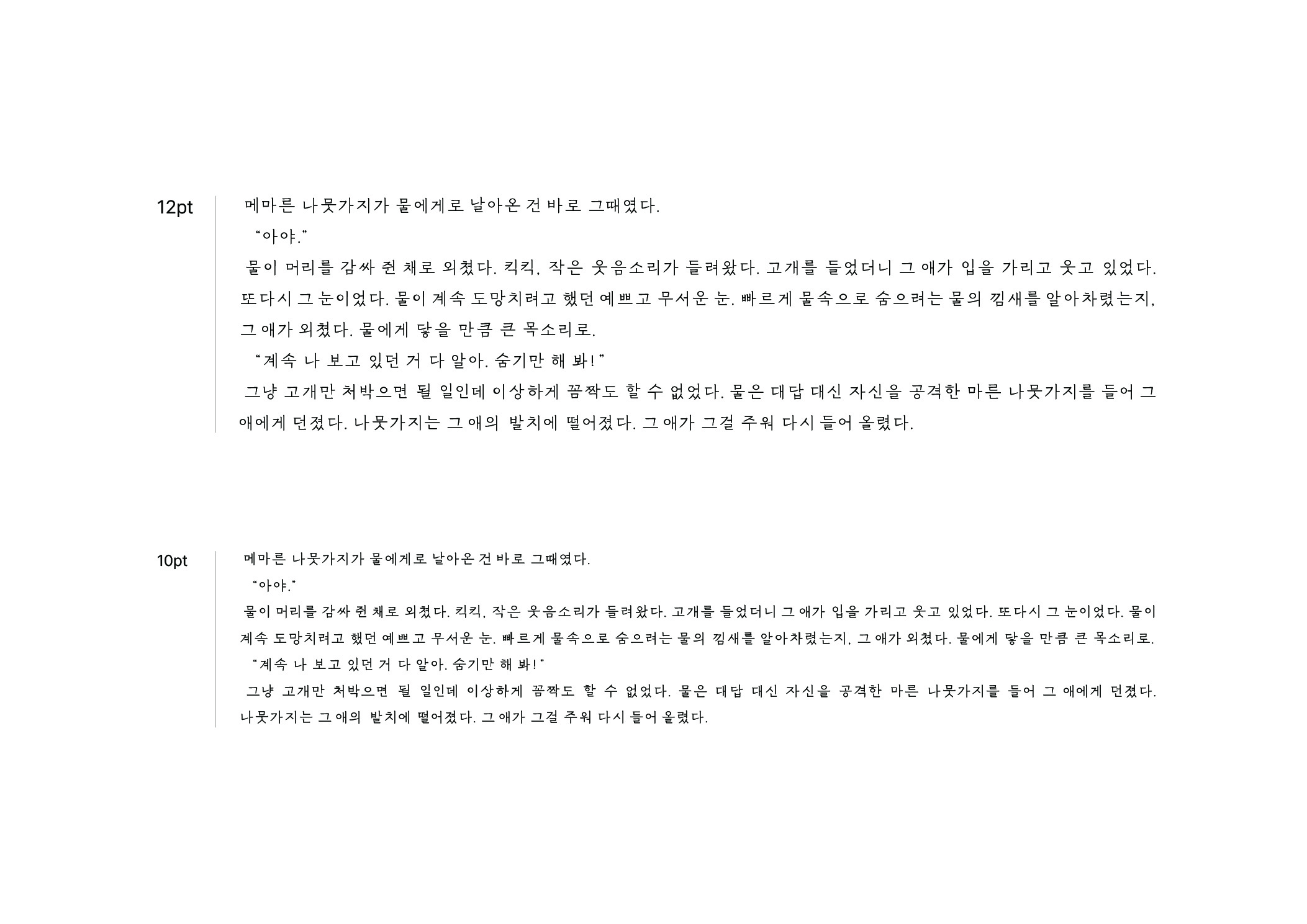 《사사》는 9pt~14pt 범위 내 사용을 추천한다.