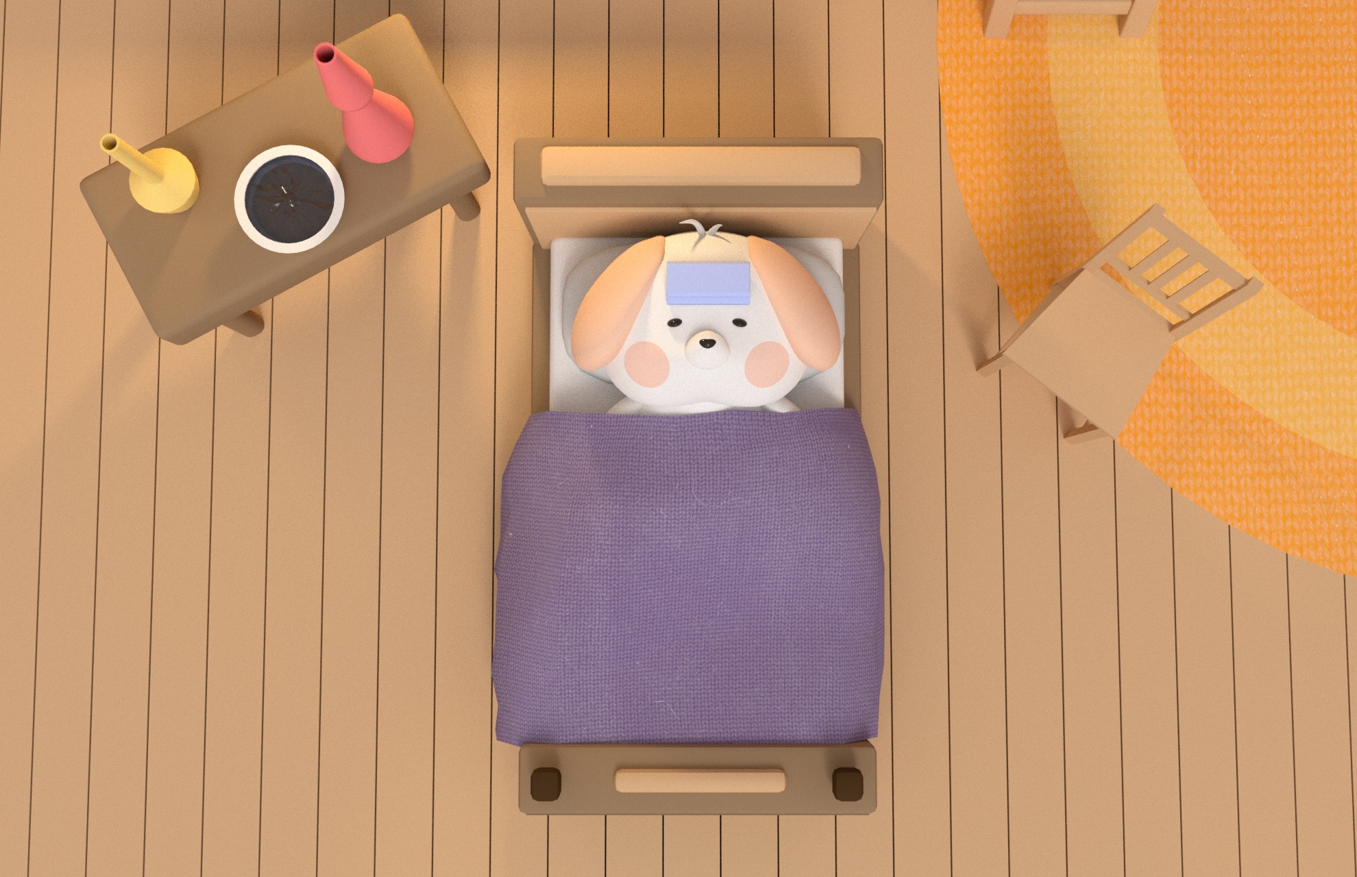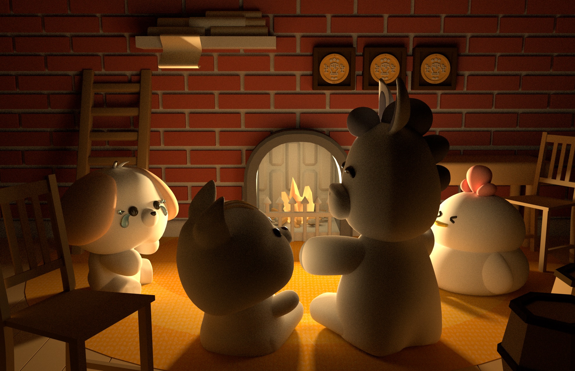 브레멘오두막 어플리케이션에 등장하는 캐릭터들 중 하나인 다독이의 스토리를 3D로 그려내보았다.