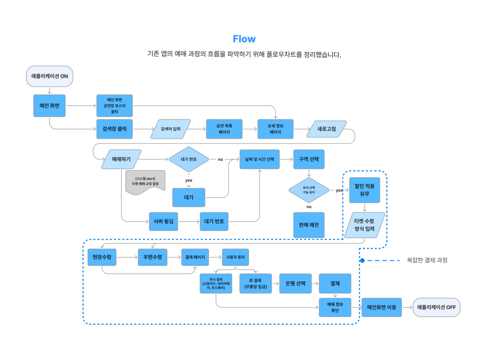 UI 개선, 모바일 중심 디자인, 서비스 추가, 예매 시 딜레이 감소, 암표 거래 방지 등의 개선 사항으로 해결하고자 합니다.