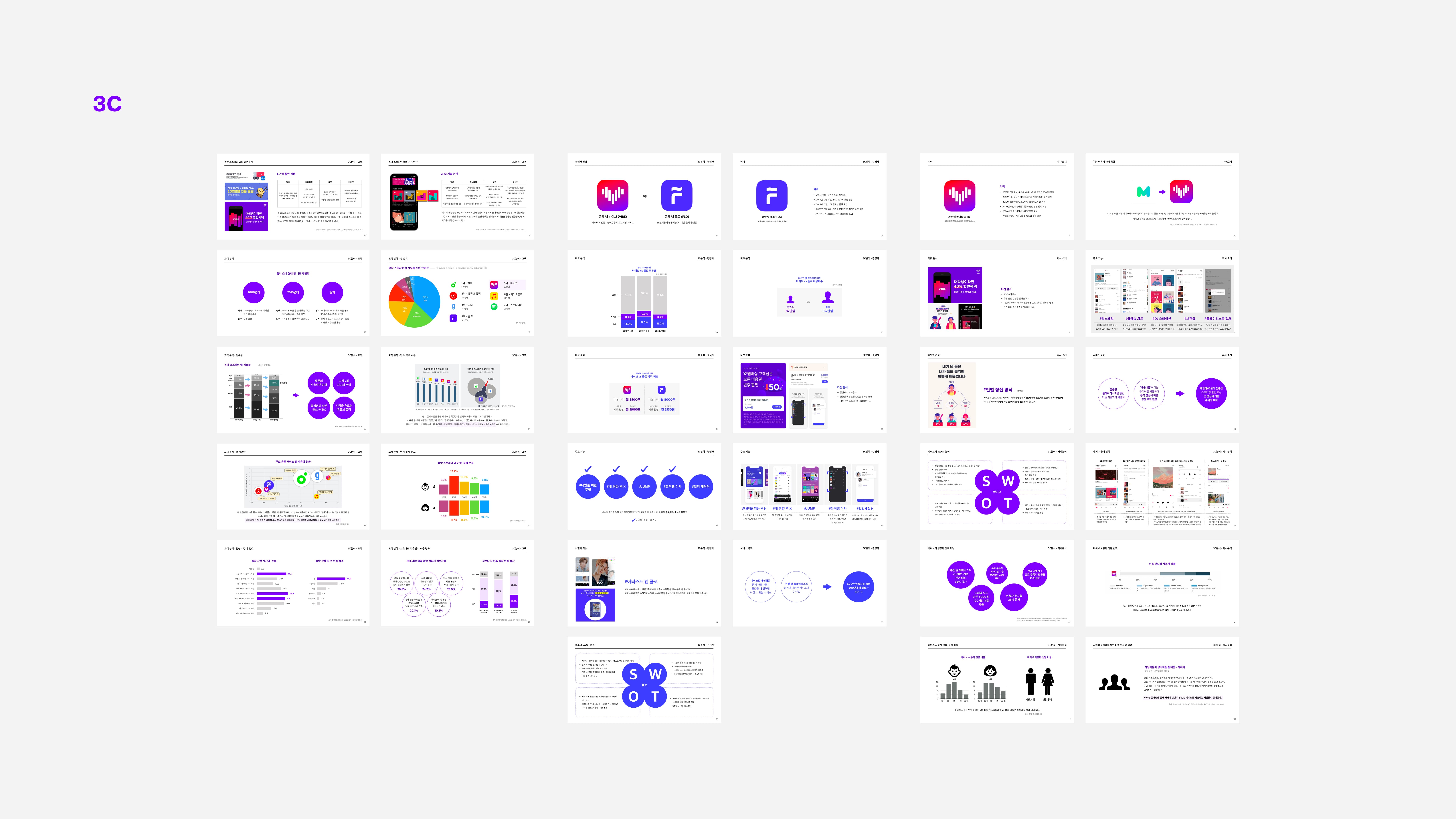 3C / SWOT / 페르소나 / 고객여정지도 등을 활용하여 무신사에 대한 시장조사와 타사와의 경쟁 분석, 사용자 분석을 하며 앞으로의 디자인 방향을 기획하였다. 그리고 앱의 구조를 새롭게 설계하고 스토리보드와 와이어프레임을 스케치하며 최종적으로 화면을 디자인하게 되었다.