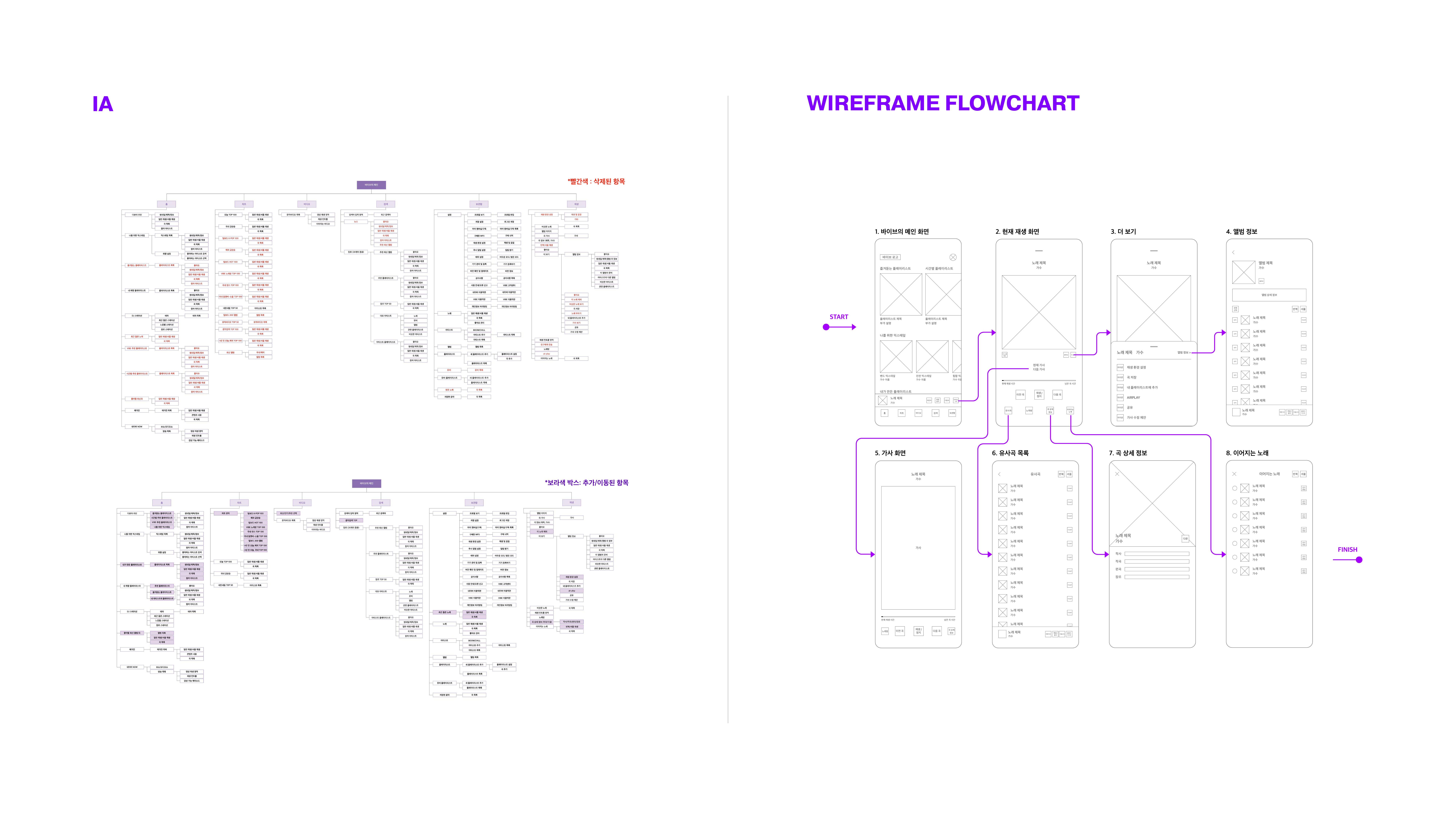 분석을 통해 문제점과 해결 방법을 도출해낸 후 메인 화면에 '내가 만든 플레이리스트' 영역을 추가하고, 현재 재생 중인 곡 화면에서 바로 적용할 수 있도록 '이 노래 제외' 버튼을 추가하는 등 사용자 맞춤화 기능을 우선순위로 하고, 번거로운 플로우를 정리하여 앱 리디자인을 하였다.