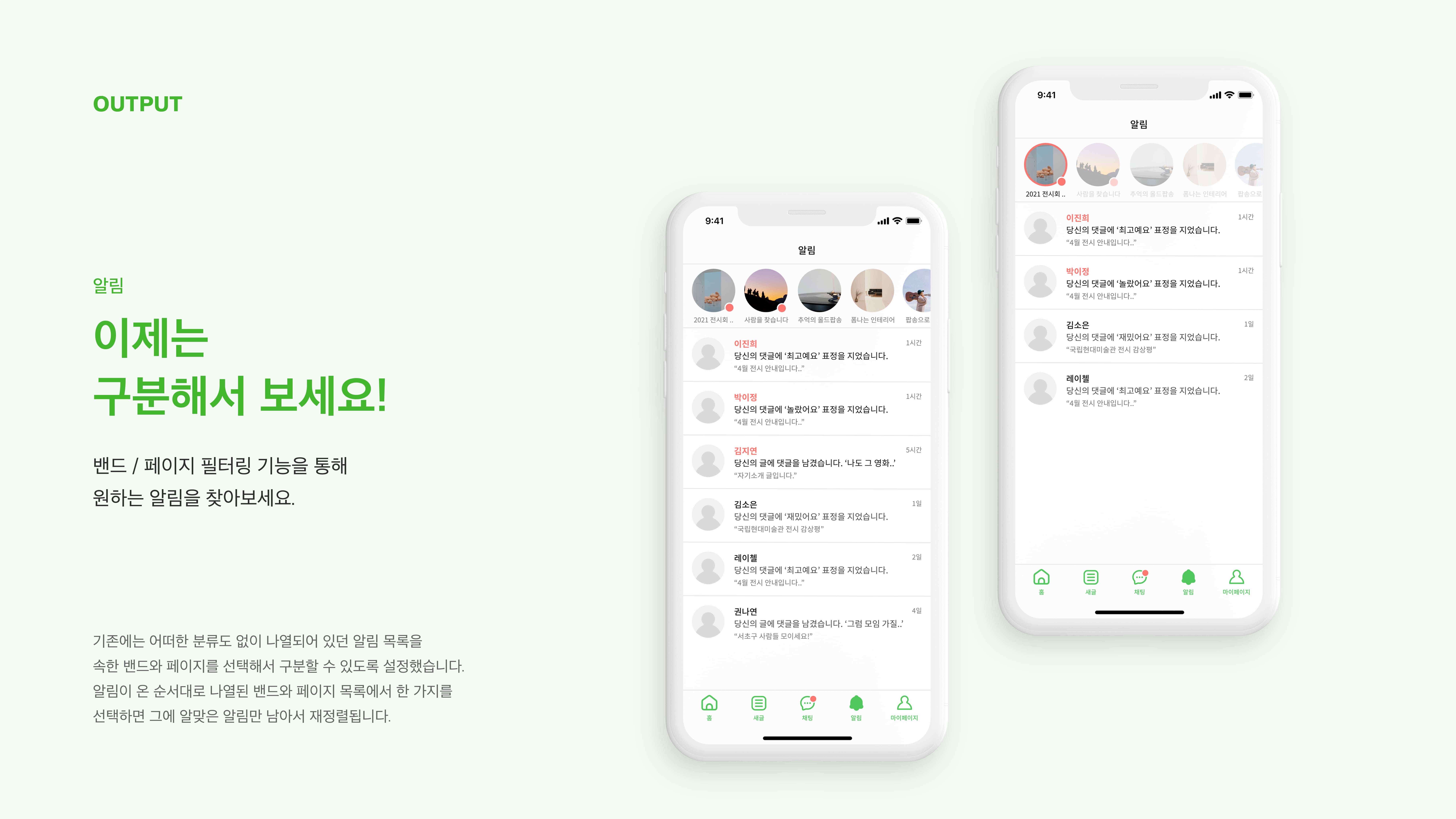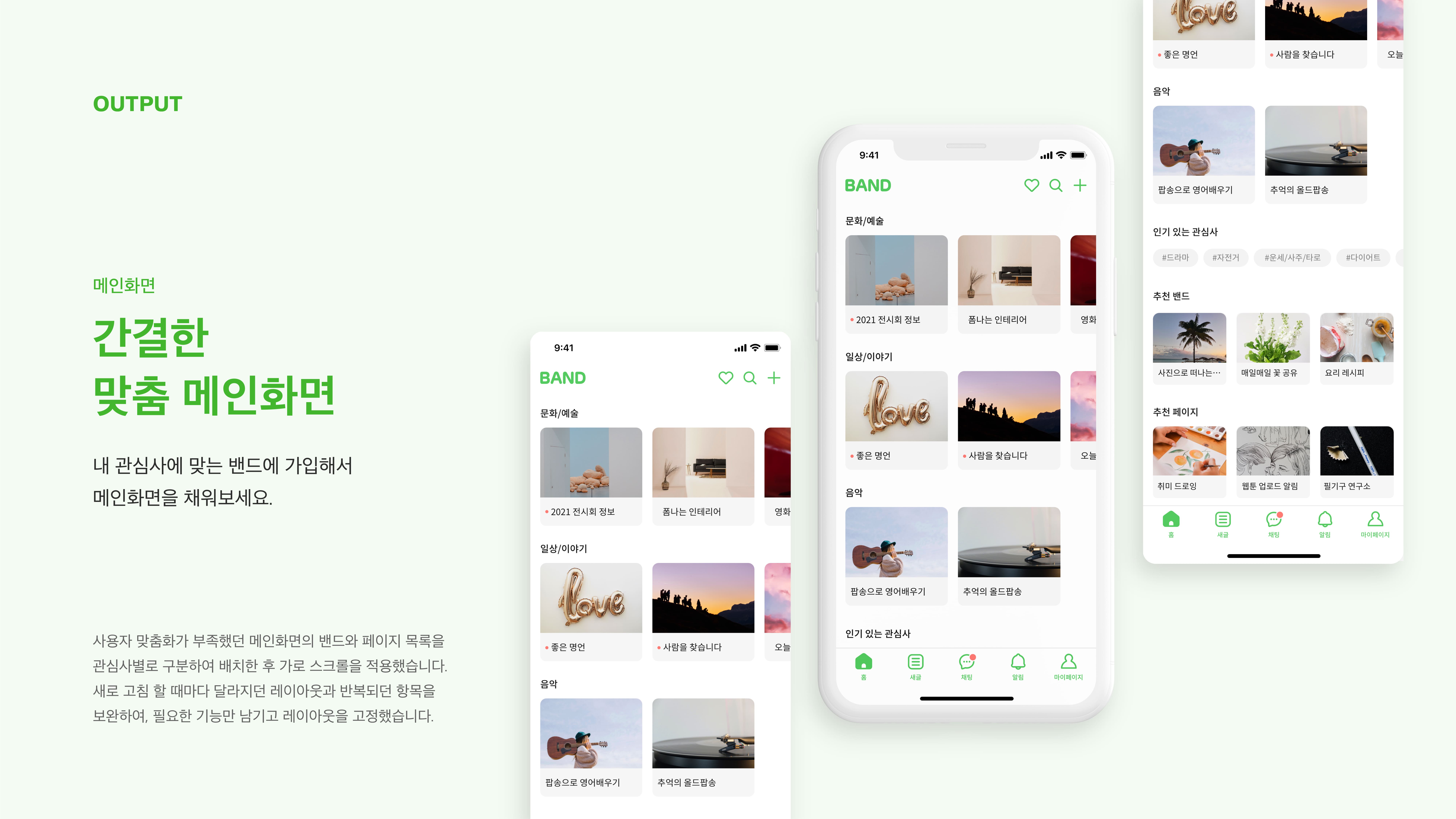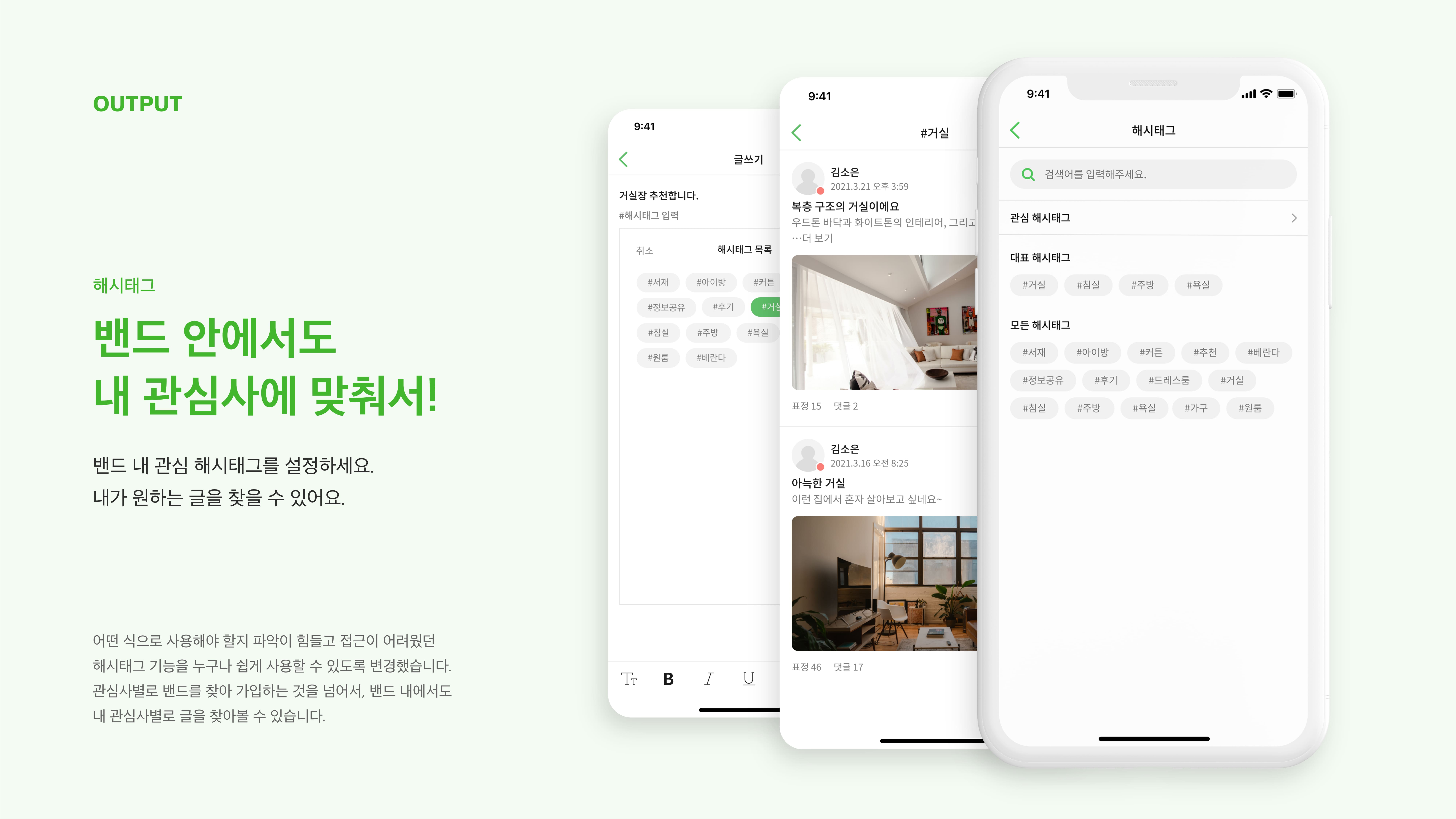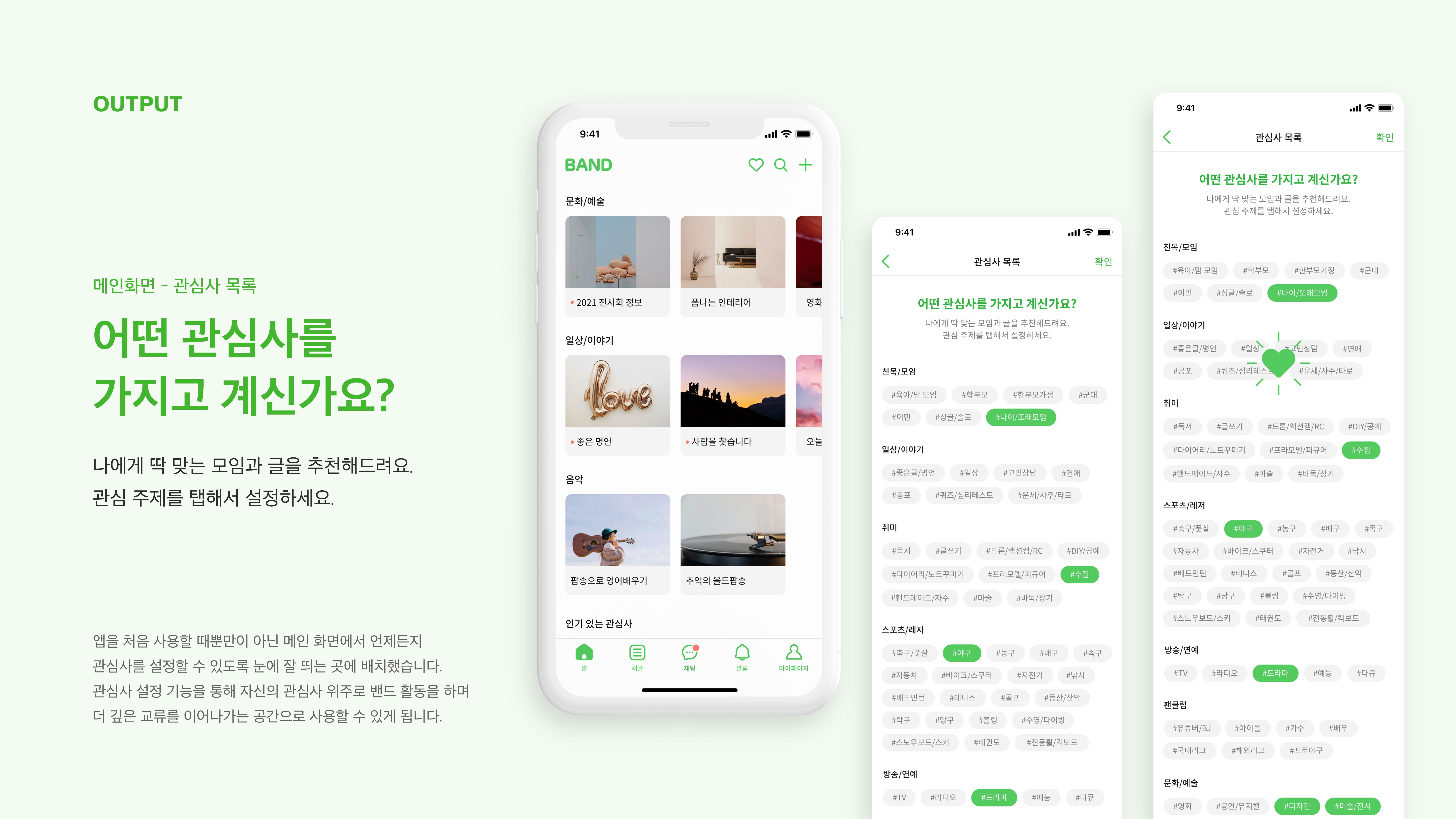 리디자인 후의 네이버 밴드에서는 '관심 주제'와 '해시태그' 기능을 핵심적으로 사용하여 나의 관심사 위주로 밴드 활동을 하면서 더 깊은 교류를 이어나가는 공간으로 앱을 이용할 수 있도록 한다.