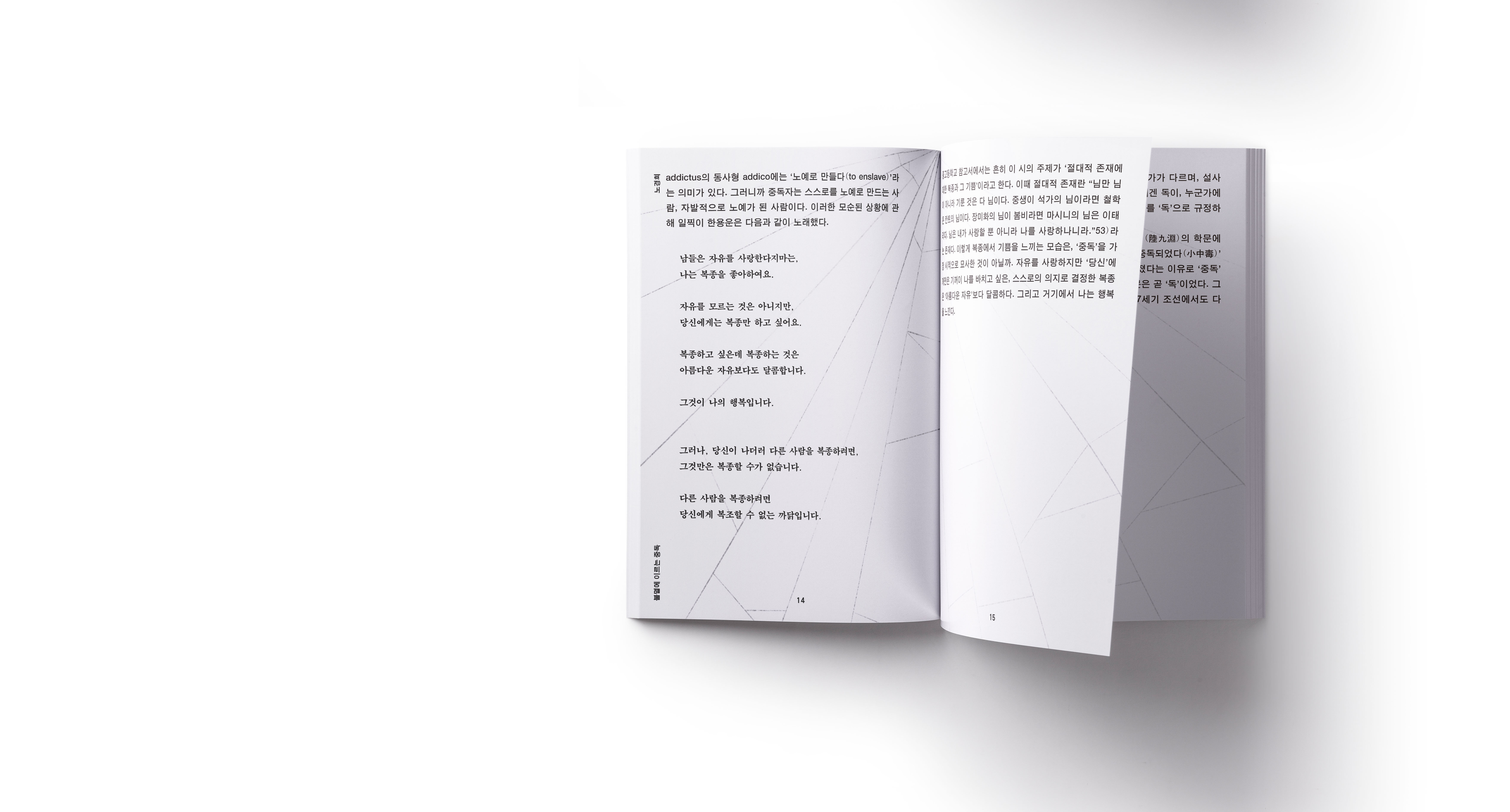 인문 잡지 한편을 한데 묶어 새롭게 리디자인한 책 ‘덫’은 고정적 이미지를 타파하며, 다양한 분야의 글이 담긴, 인문서집을 통해 독자들이 새로운 시각을 갖기를 바라는 마음으로 제작했다.