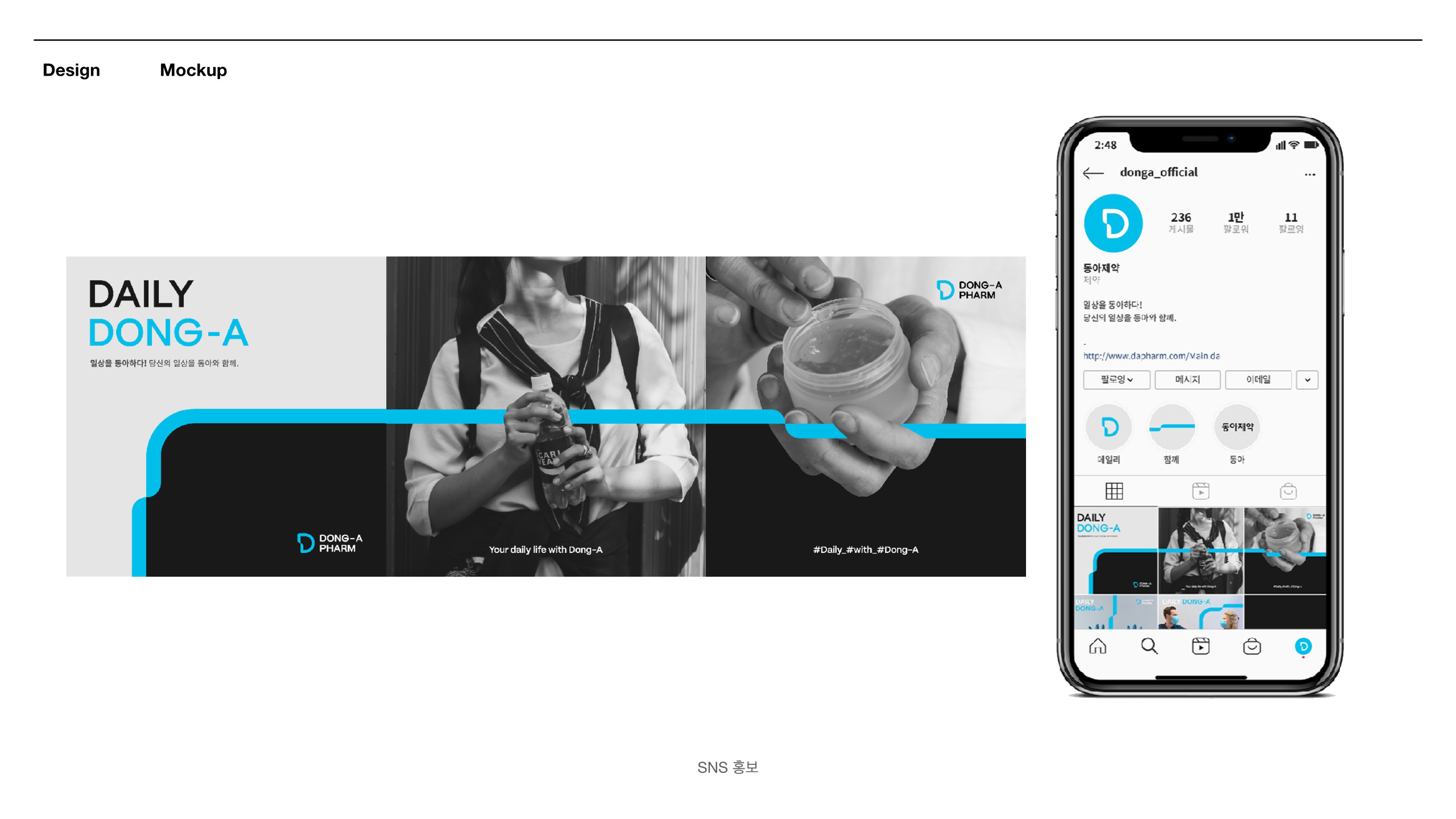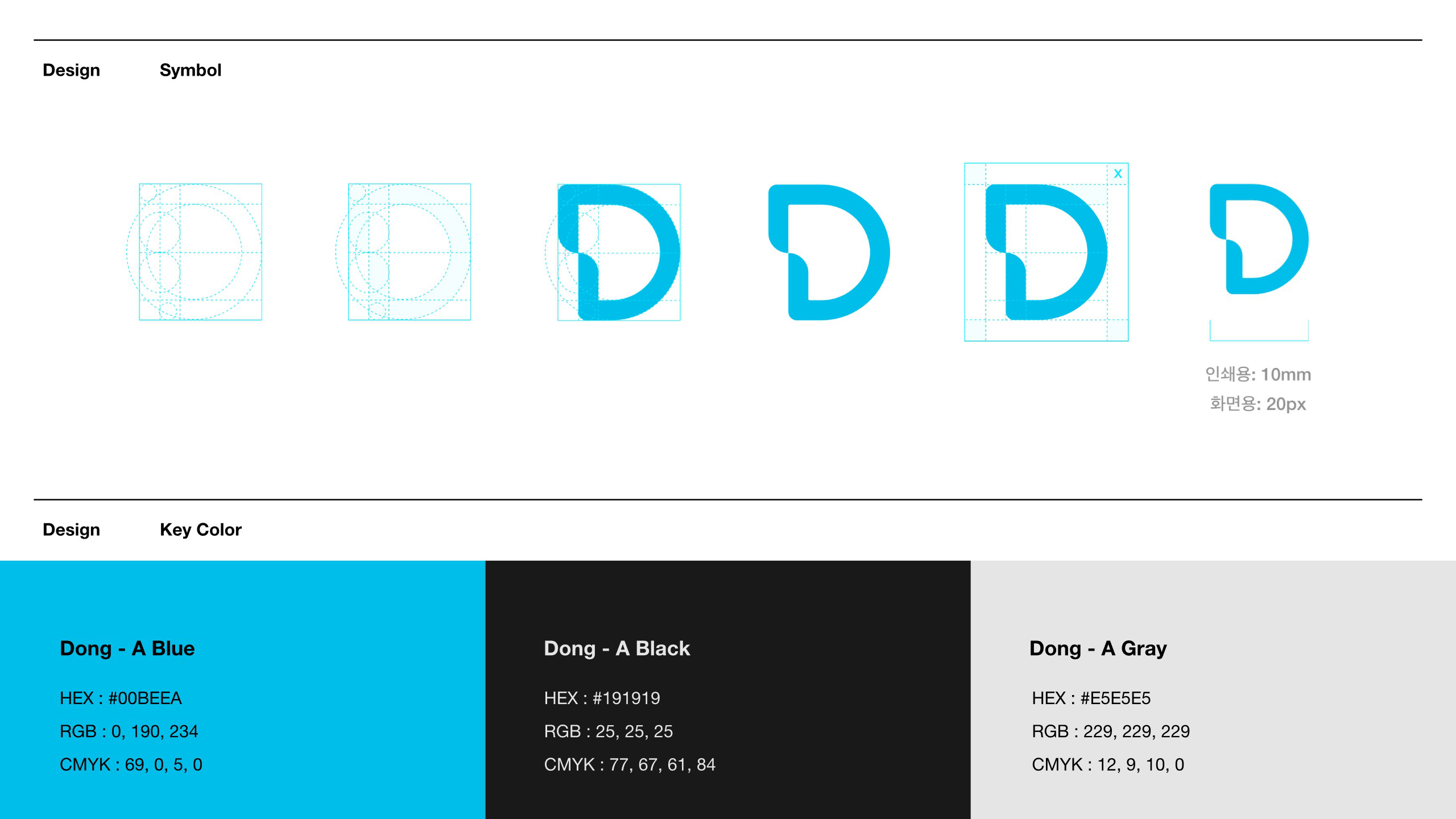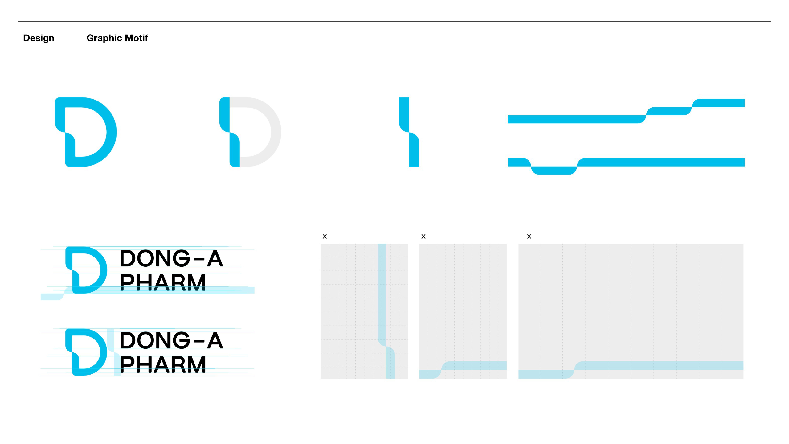 심볼은 동아제약의 알파벳 D를 활용했으며 또한 DNA를 형상화 하여 제약회사의 이미지를 살리고, 동아와 소비자의 영원한 이어짐을 나타냈습니다. 로고는 현대적인 이미지의 워드타입과 채도 높은 푸른색으로 친근감을 느껴지게끔 변경하였습니다. DNA 나선형 구조를 기반으로 그래픽 모티프도 개발하여 패키지, 사무 용품, 사원증, SNS 등 다방면에 활용했습니다.