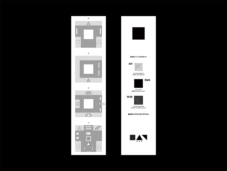 안내도와 안내 책자는 한 패키지 안에 담겨 있으며, 패키지는 변주하는 로고 심볼을 인쇄매체에서도 경험할 수 있도록 제작되었다.