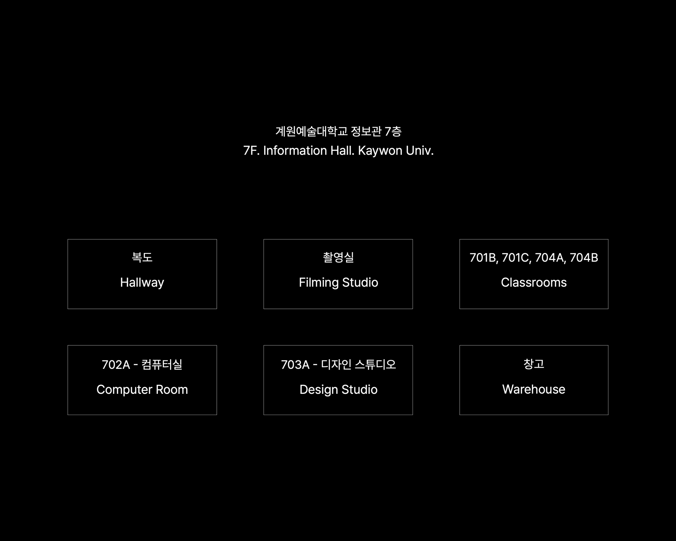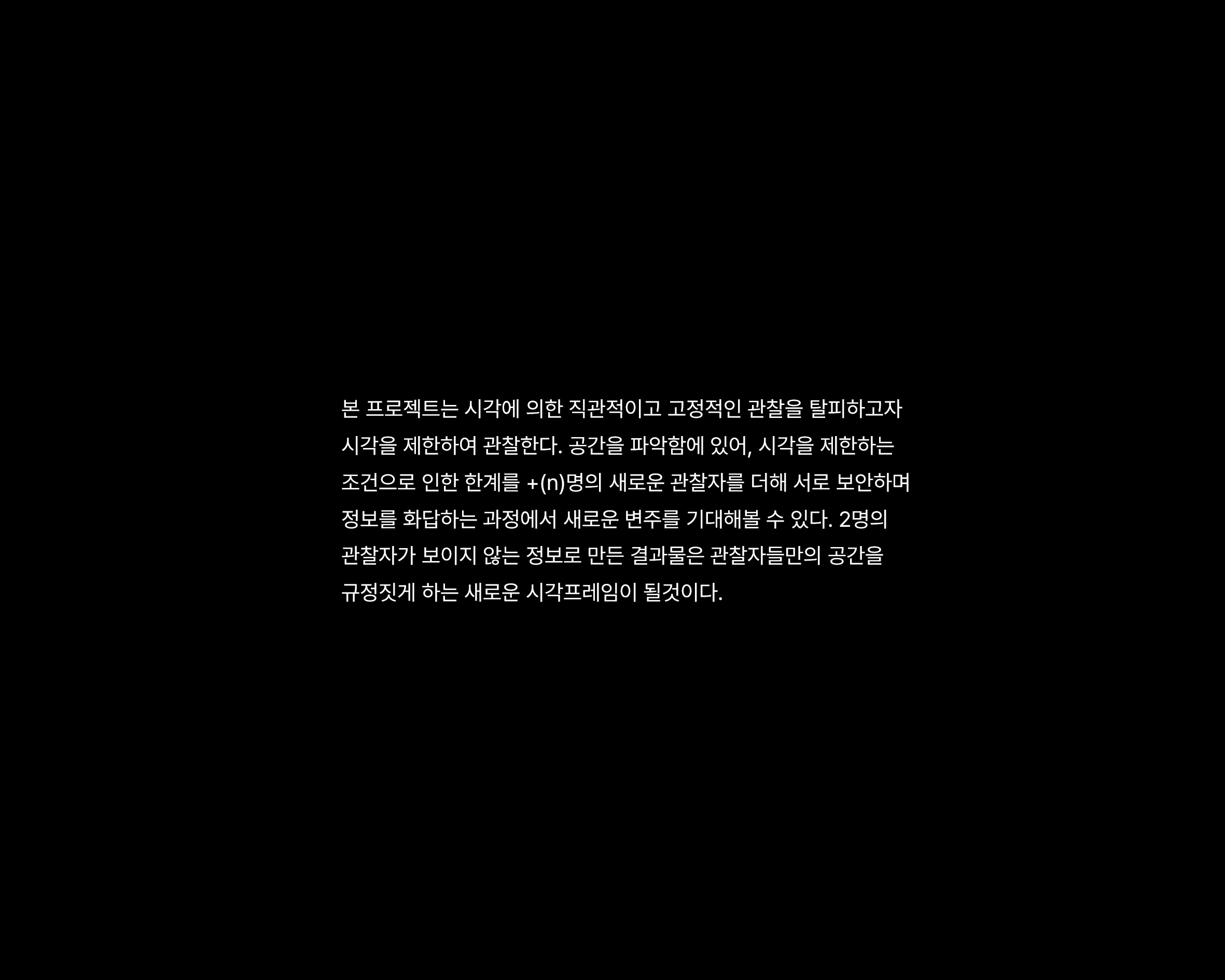 전준성과 정지민은 계원예술대학교 정보관 7층(시각디자인과)을 대상으로 새로운 관찰법을 제시하고, 새로운 공간을 규정하는 프로젝트이다.