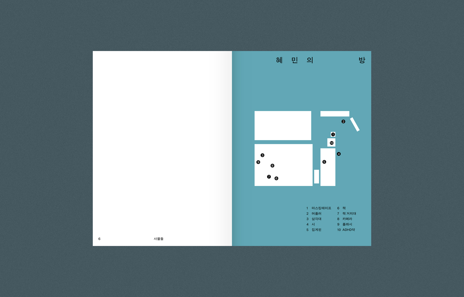 감염병의 세계적인 대유행으로 인해 그 어느 때보다 ‘거리’라는 개념을 생생히 감각해온 지난 2년간 우리는 서로의 거리를 멀찍이 떨어트려놓았지만, 동시에 우리가 타인과 어떻게 연결되어 있는지를 다시 한번 확인하는 계기가 되었다. 우리는 각자의 방에서 수업을 듣고, 회의를 하고, 안부를 전하고, 취향을 나누었다. 방은 가장 개인적인 공간이었지만 외부와 제일 가까이 맞닿아있는 공간이기도 했다. 지난 2년간 우리가 가장 오래 머문 공간인 ‘방’을 개인의 기호가 전시된 전시공간이라 보고 방의 주인과 밀접한 관계를 맺고 있는 사물들을 재해석하여 새로운 전시를 꾸렸다.