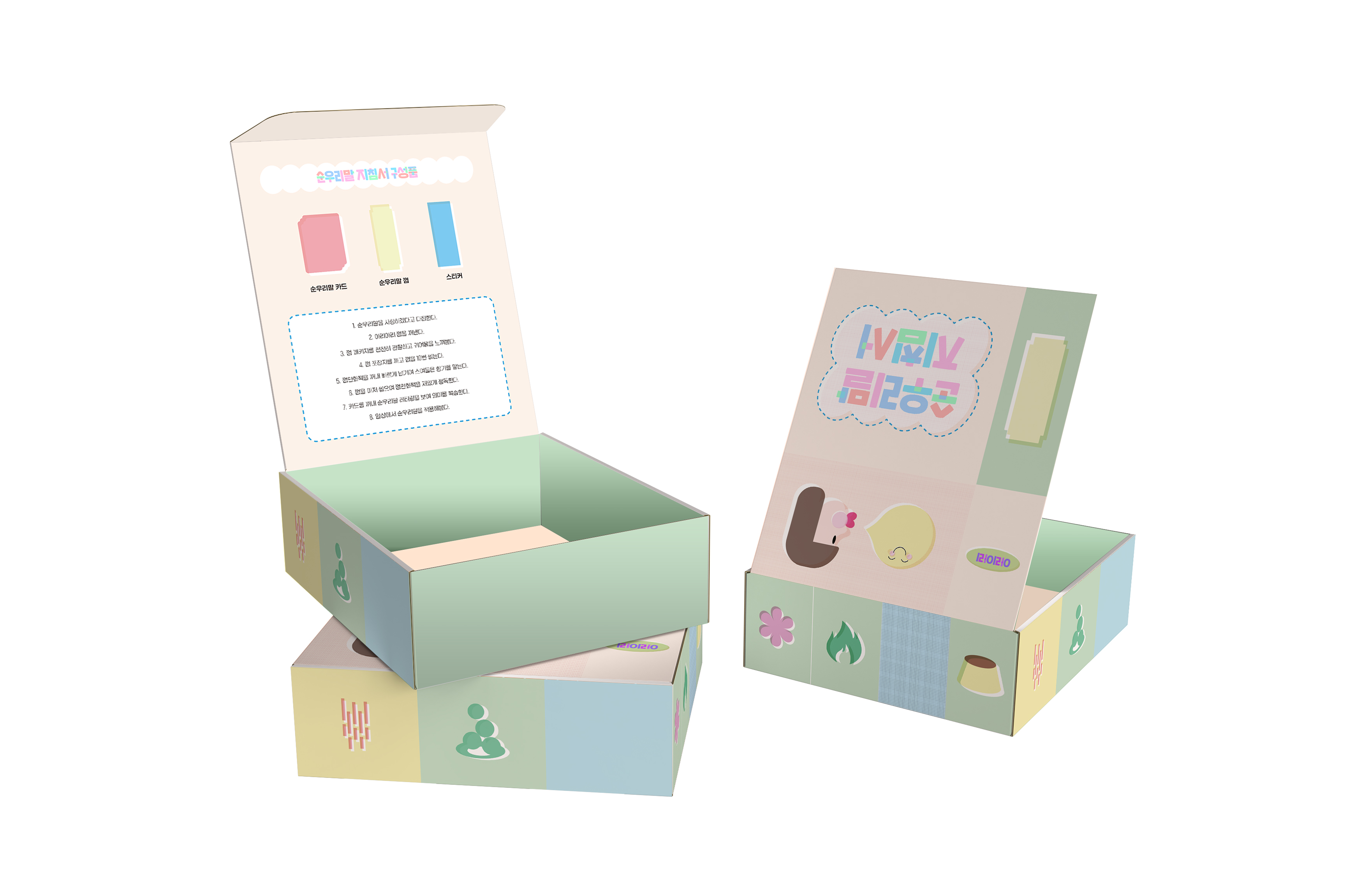 ⌜순우리말 지침서⌟는 이러한 문제를 해소하고자 순우리말의 종류와 의미, 쓰임에 관한 정보를 전달하는 데 목적을 둔다. 순우리말 레터링을 담은 의미 카드, 실생활 적용 만화책과 껌 상자를 하나로 묶어 구성한 지침서는 순우리말을 누구나 손쉽게 접하고 실제로 사용할 수 있도록 돕는다.