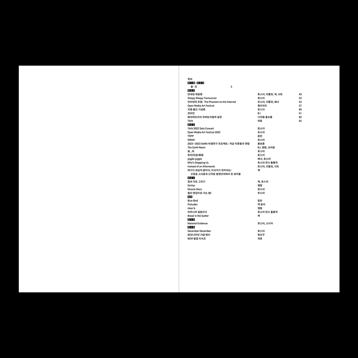 「쌓고 엮기」는 김국한의 포트폴리오 책 제목이다. 김국한이 디자이너로서 2018년부터 2023년까지 다양한 업계 의뢰인과 협업하여 만든 결과물을 일부분 확대하거나 축소해 시간순으로 보여준다. 그동안 인스타그램과 홈페이지에 흩어져 있던 결과물을 포트폴리오 수업을 빌어 책으로 엮는 것이 목표였다.