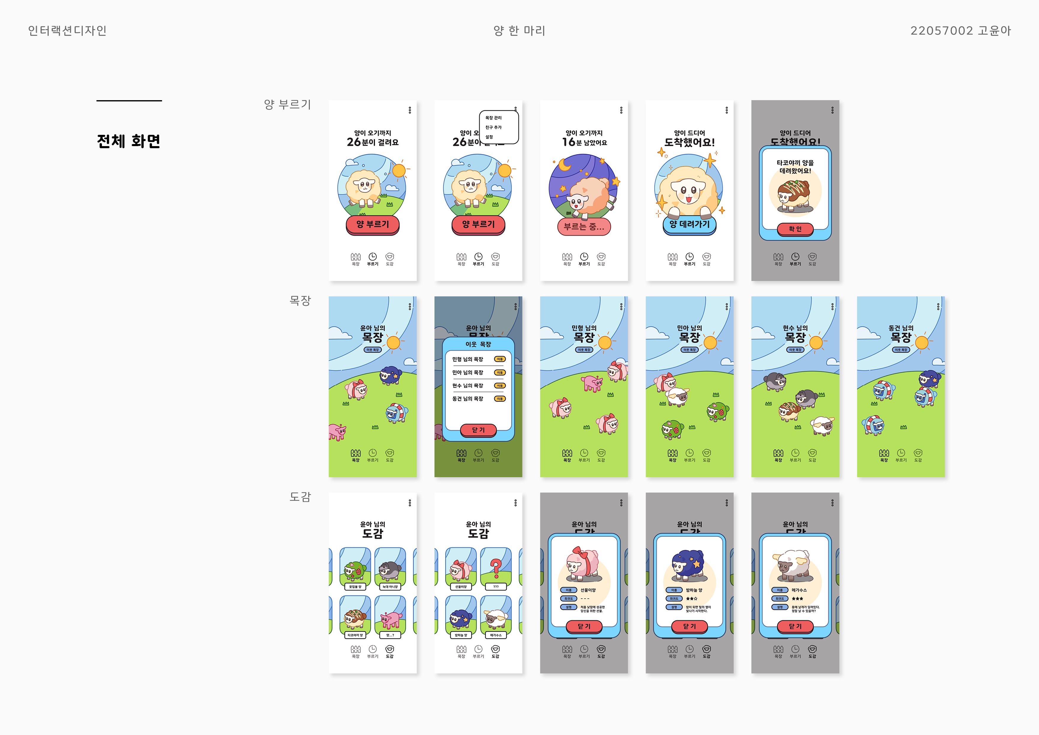 수집형 게임들을 벤치마킹하여 구조를 설계했고, 귀여운 느낌의 양들을 디자인했다.
