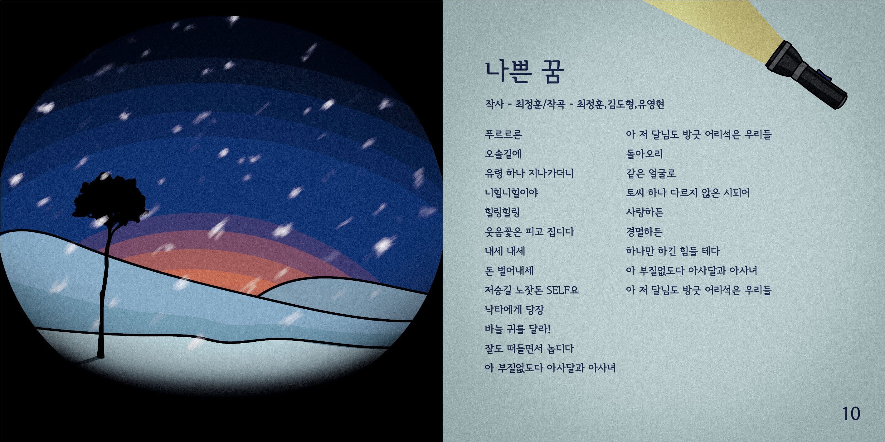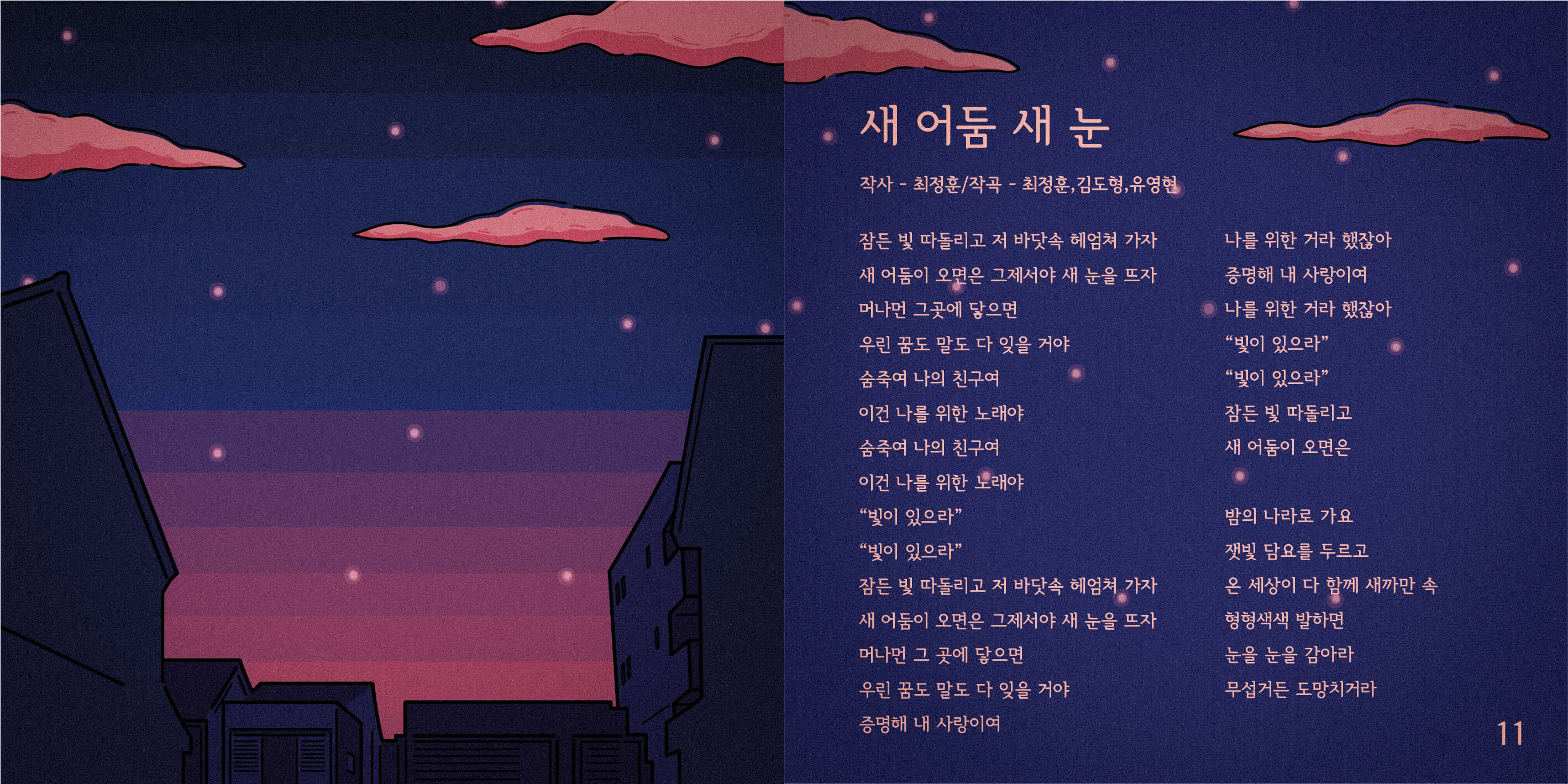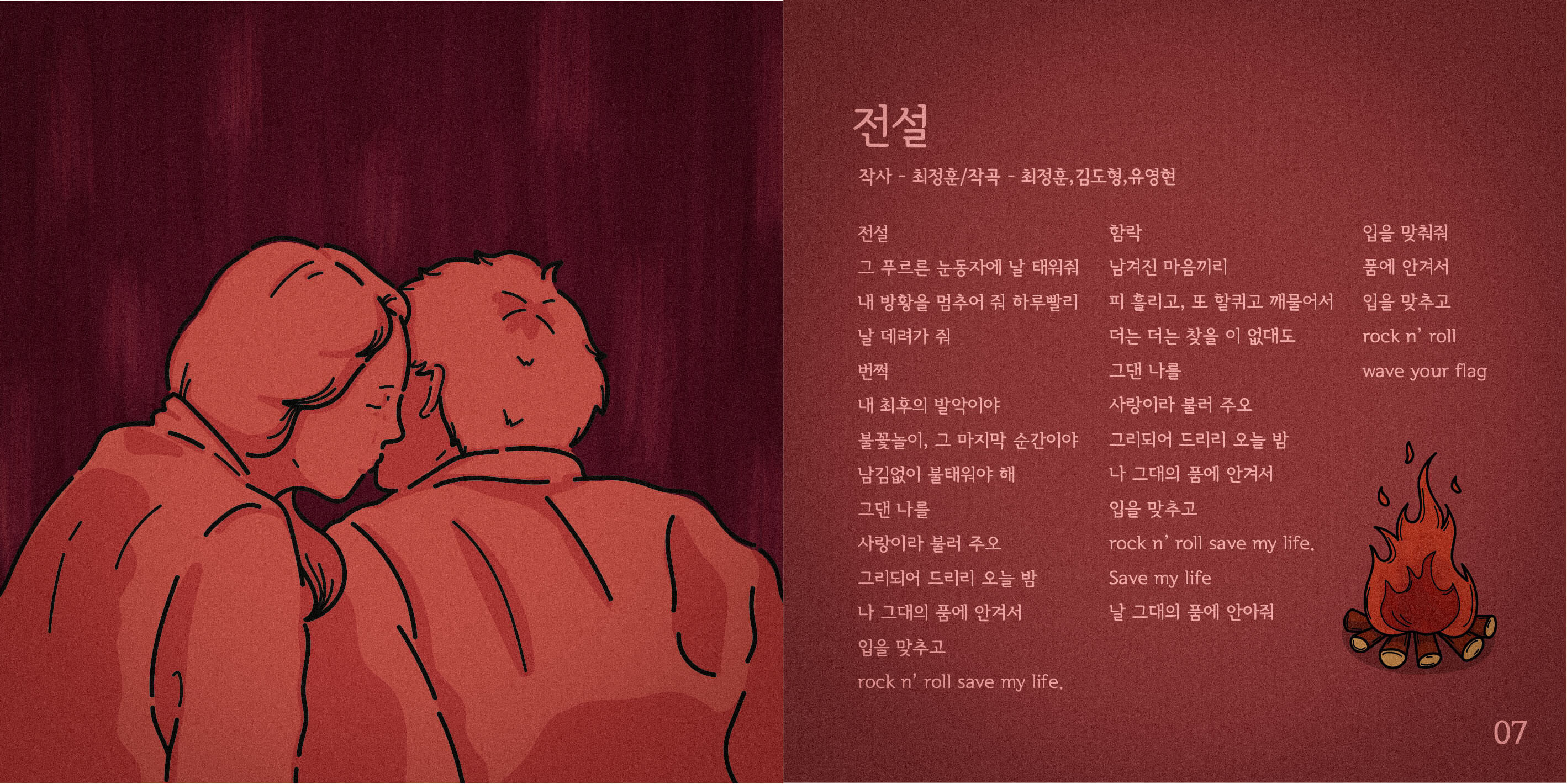 그룹사운드 잔나비의 앨범 '전설'을 리디자인 하였다. 수록곡에 어울리는 색과 일러스트로 잔나비의 노래를 재해석해 보았다.