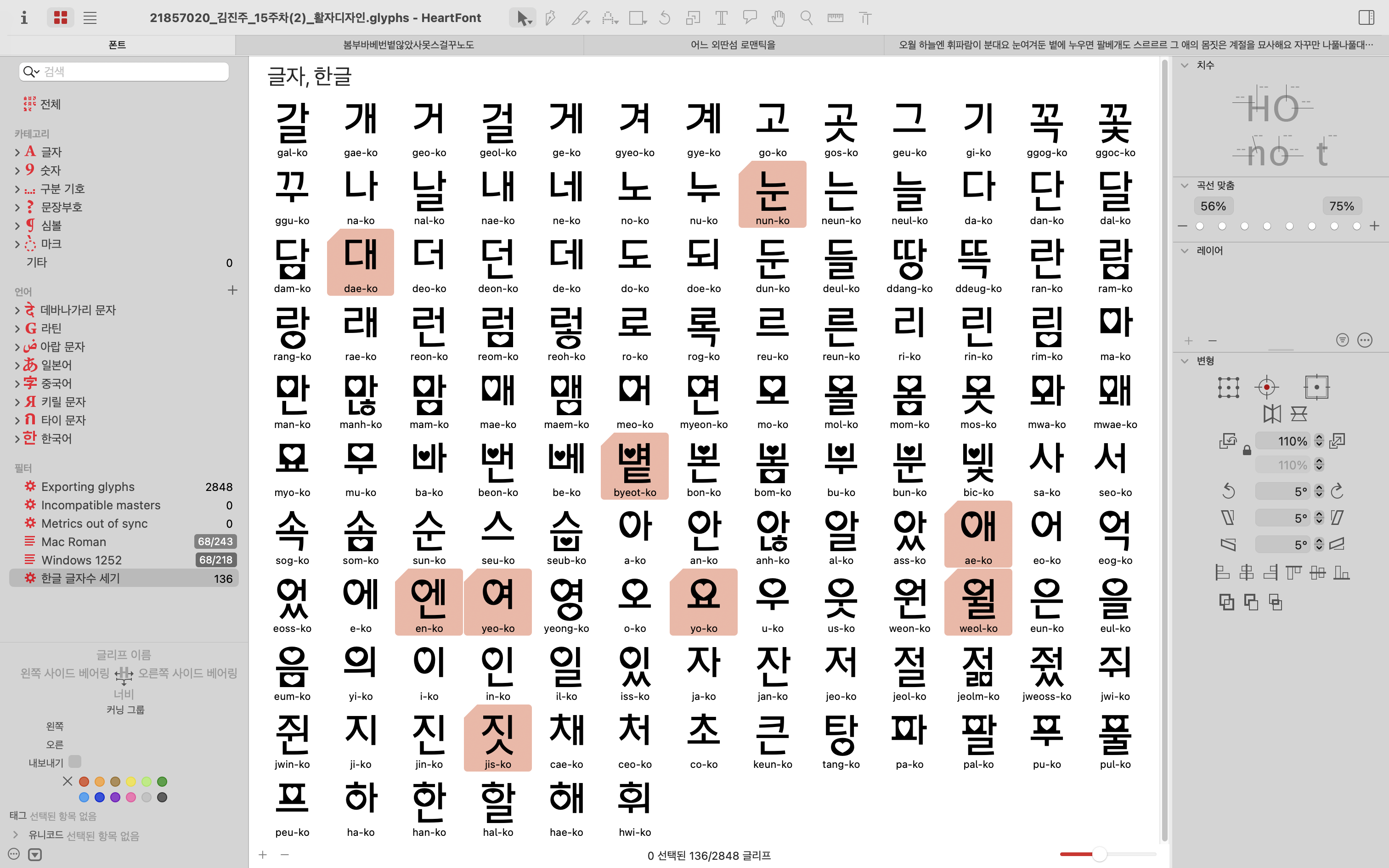 종성의 모양이 최대한 원형을 헤치지 않도록 하기 위하여 탈네모꼴을 선택하였다.