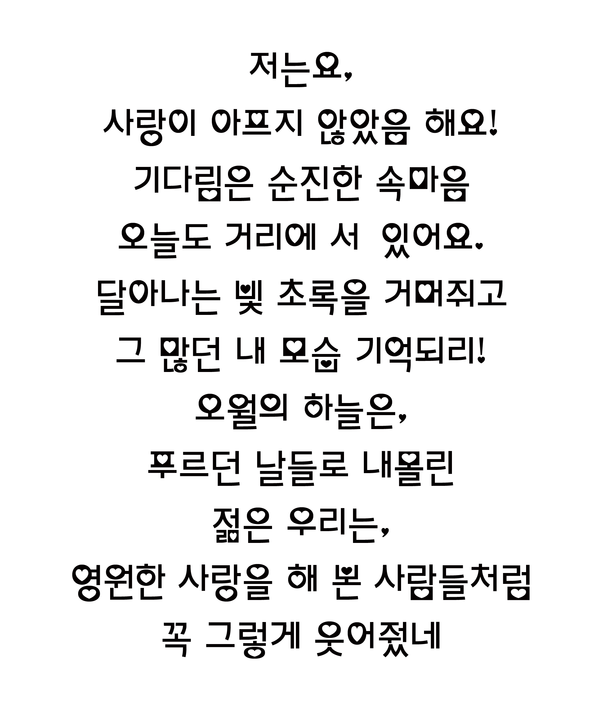 기존의 장식 요소가 들어간 ‘깜찍한’ 활자에서 어리고 화려한 이미지를 덜고 한층 모던하고 깔끔하며 심플한 인상을 주는 활자를 기획했다.