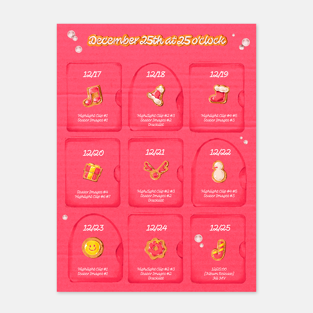 여느 날과 똑같은 24시간이 주어지는 12월 25일. 앨범의 타이틀은 일상적인 시간을 넘어 25시간이 주어진 크리스마스를 이야기한다. 크리스마스 전과 후의 여운과 마음을 상징하기도 한다. 크리스마스에 주로 즐기는 케이크를 시계의 모습에 비유하여 크리스마스의 하루를 표현한다. 또한 크리스마스가 연상되는 트리, 리스, 쿠키 등 다양한 오브젝트로 확장하여 앨범이라는 매체에 적용한다.