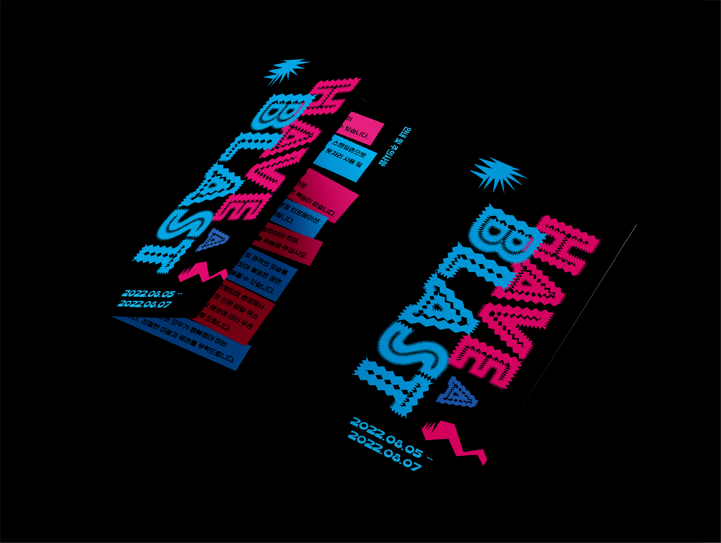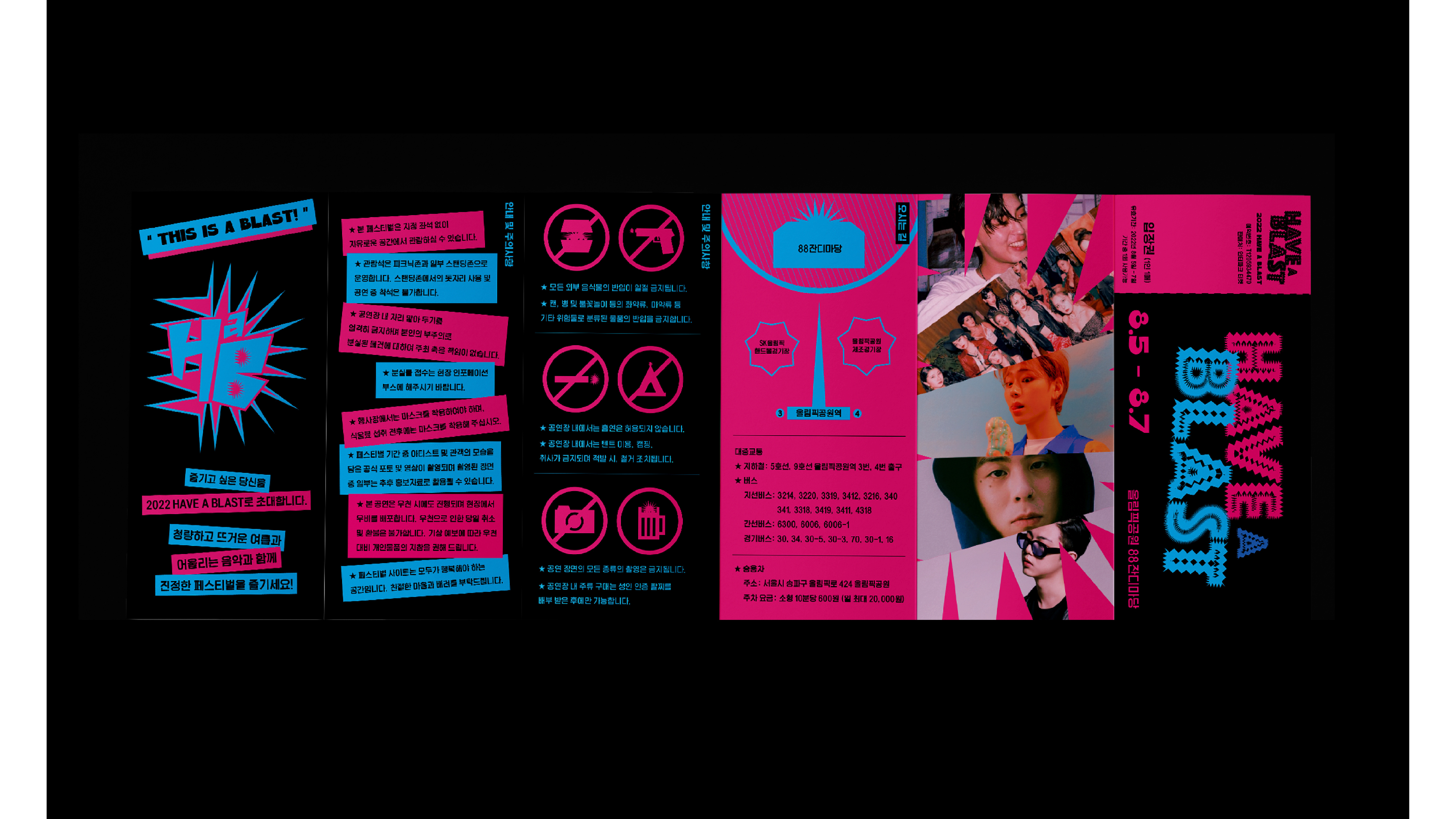'BLAST : 폭발'을 디자인 키워드로 선정하여 가상의 페스티벌을 즐길 수 있는 리플렛과 앱을 디자인했다.