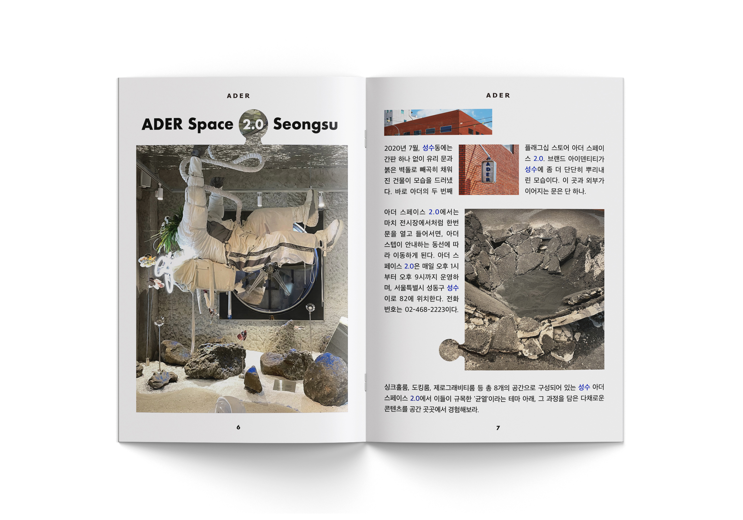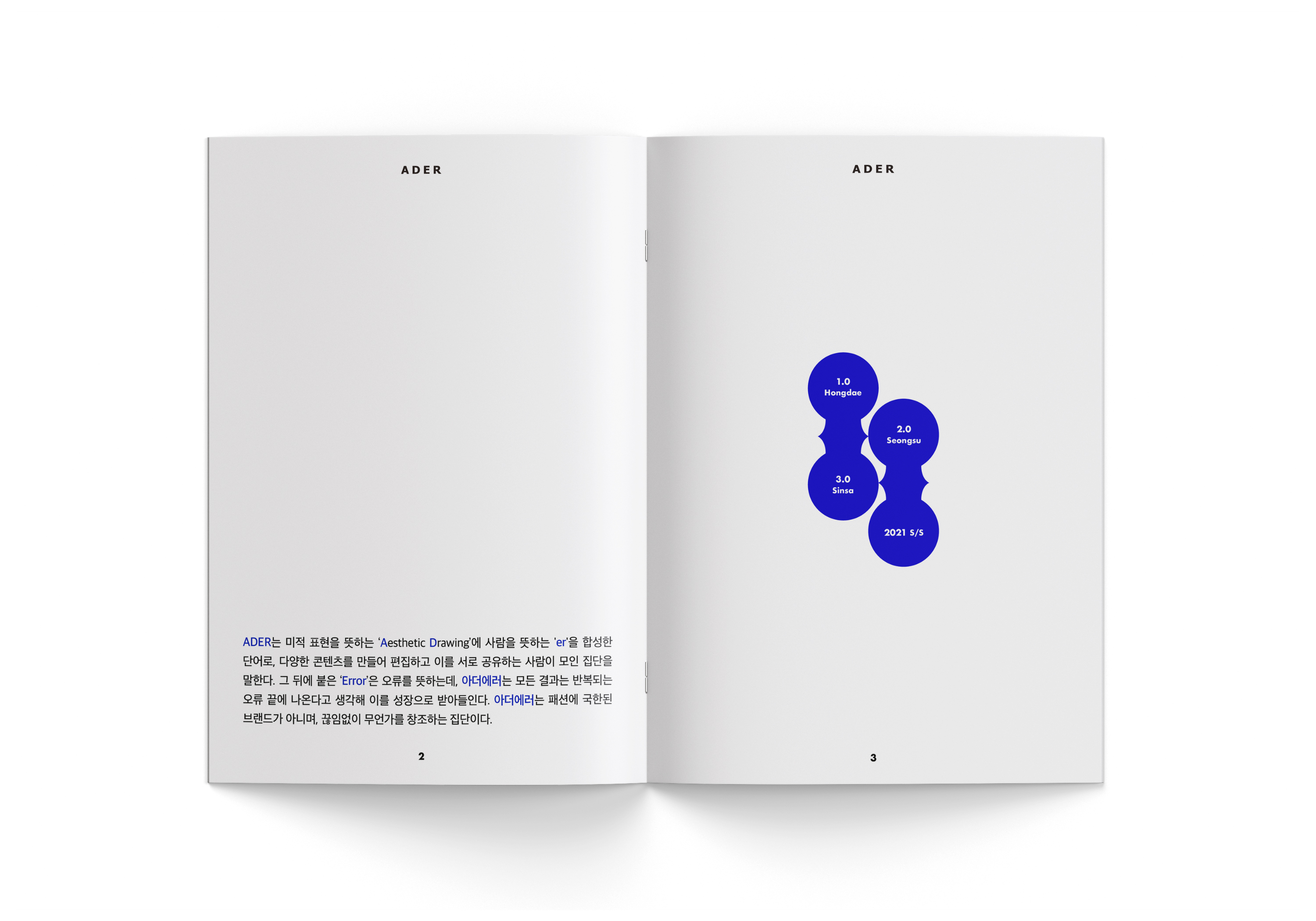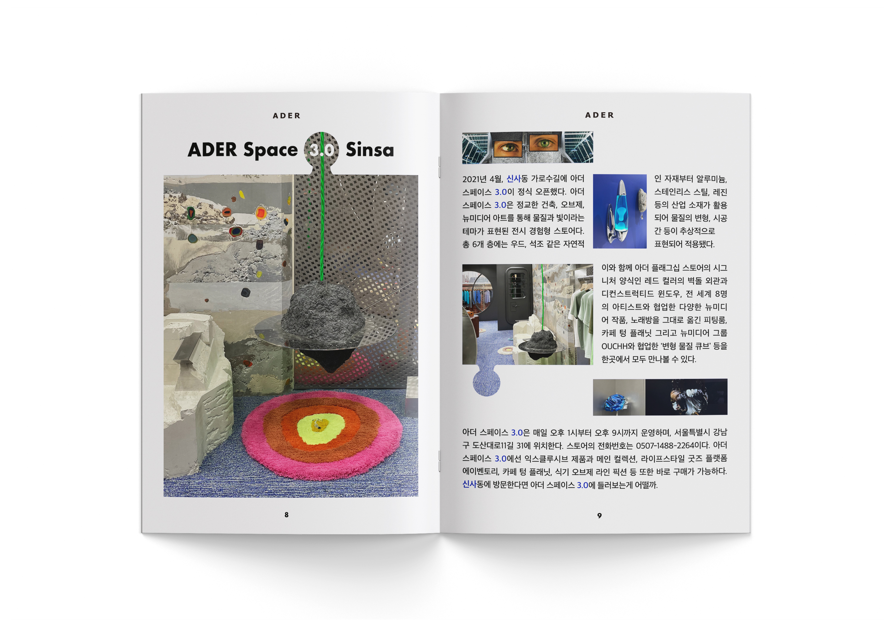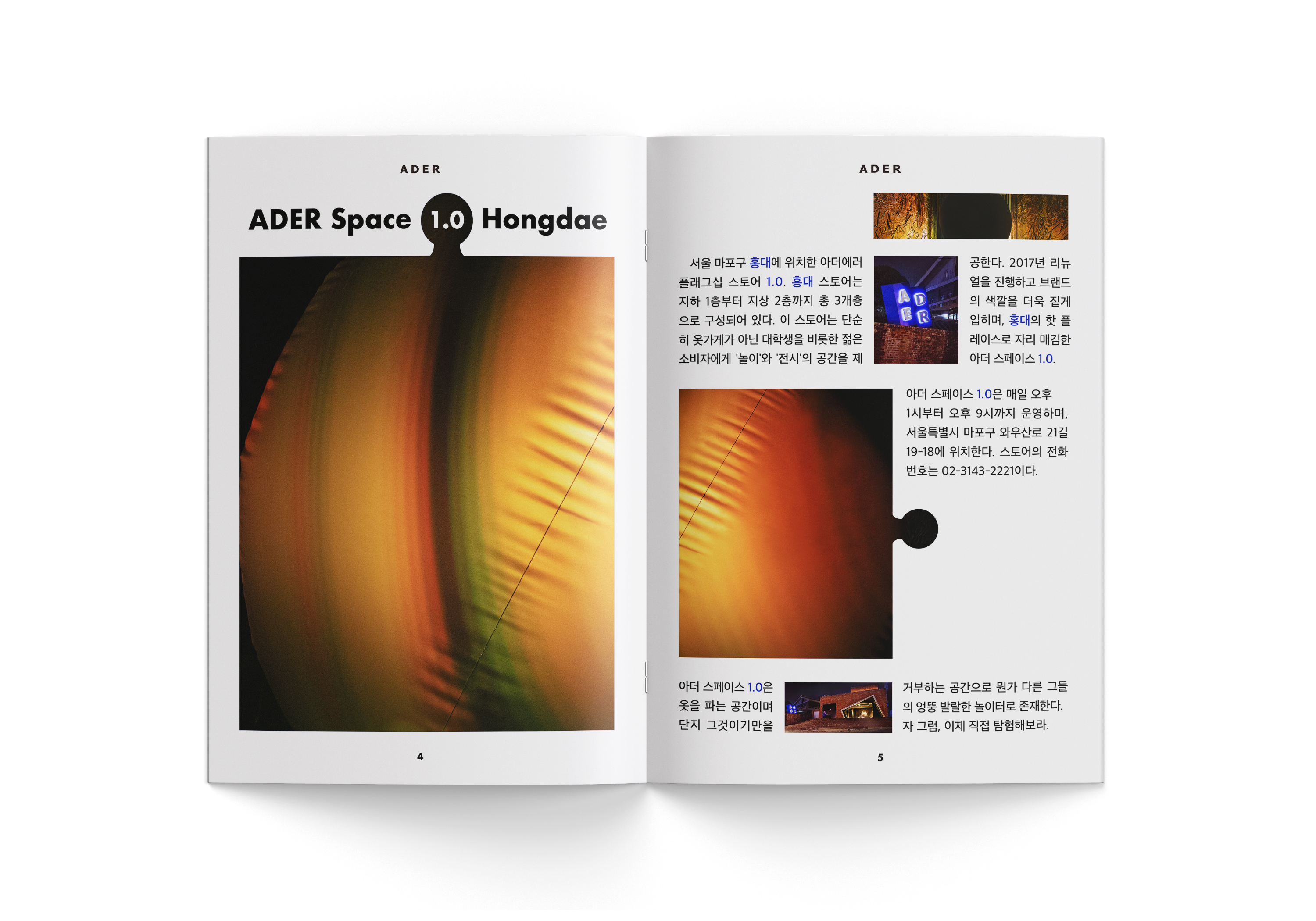 문화 커뮤니케이션 브랜드 ADER 리디자인새로운 문화를 제안하는 ADER의 세 번째 플래그십 스토어 오픈을 기념하며, 세 곳의 스토어를 소개하는 팸플릿과 앱을 로고와 함께 리디자인했다.