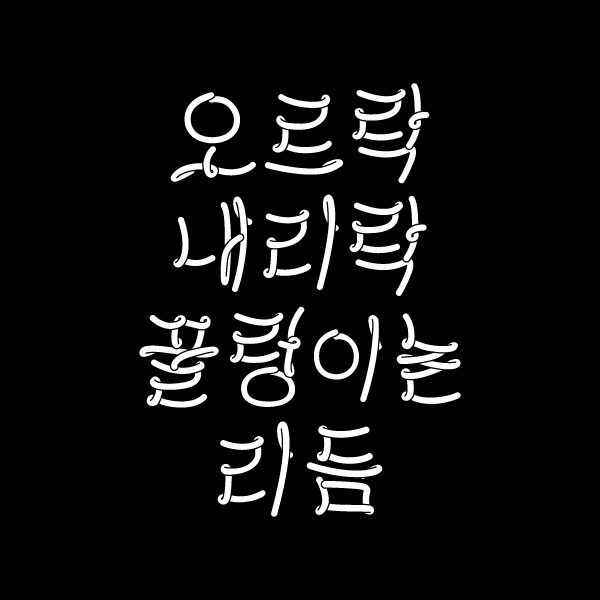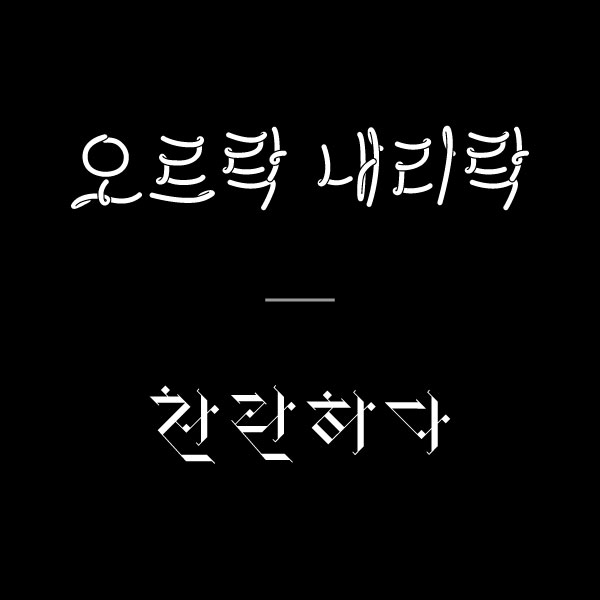 빛이 반짝거리거나 불빛이 빛나는 상태를 획의 삐침과 마름모의 형태를 규칙적으로 이용하여 빛이 번지는 느낌을 화려하게 표현했다.