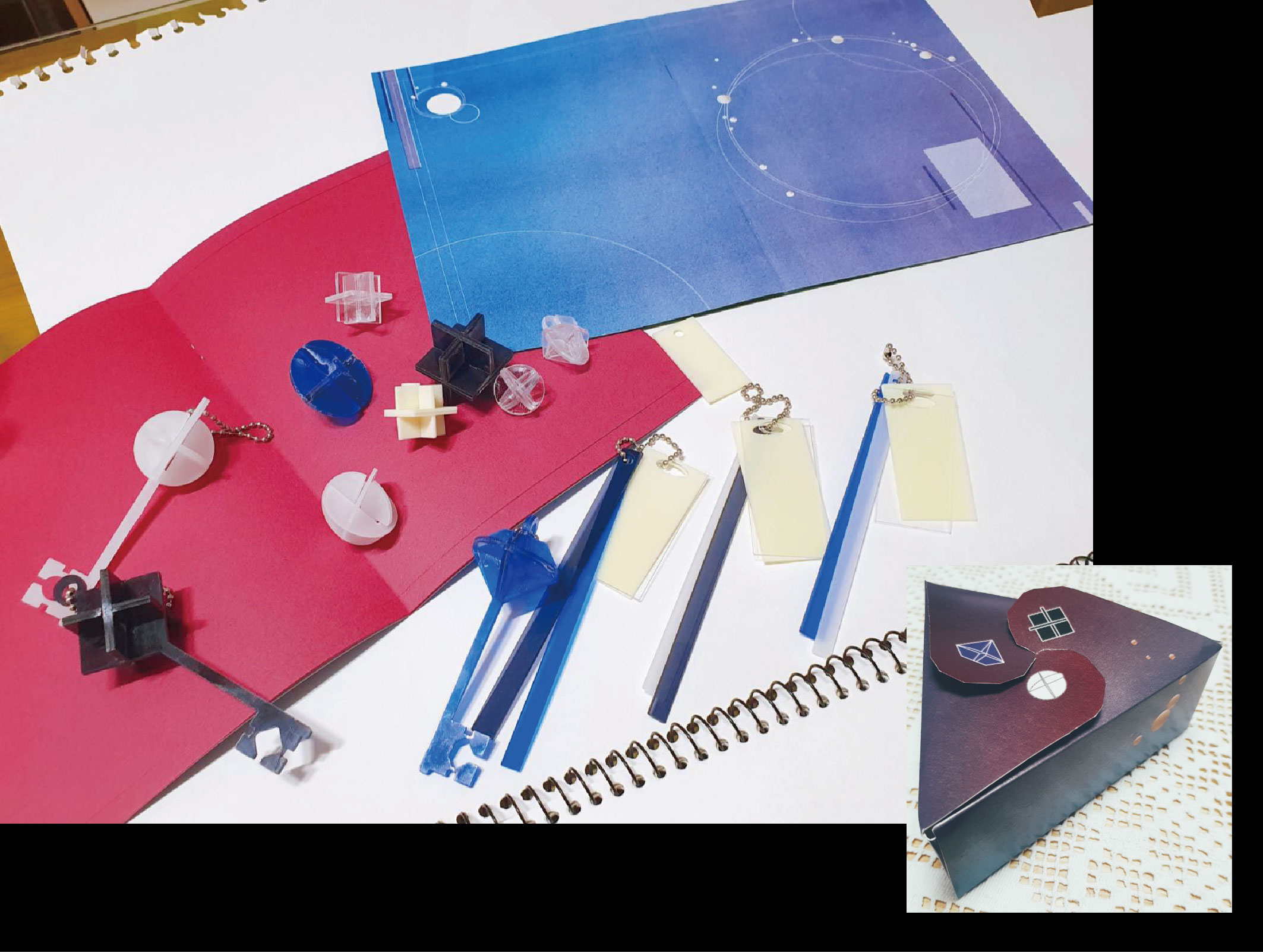 몽환적이고, 신비로운 것을 떠올리게 하는 이미지를 수첩과 박스의 배경으로 선택했고, 마치 그곳으로 들어가는 듯한 느낌을 주기 위해 키링을 열쇠처럼 제작했다. 빠져드는 듯한 배경과 어딘가의 문을 열 수 있을 것만 같은 열쇠가 특징인 디자인이다. 판타지 영화를 연상시키기 위한 디자인을 선택해, 전체적으로 몽환적이고 신비로운 느낌을 자아낸다.