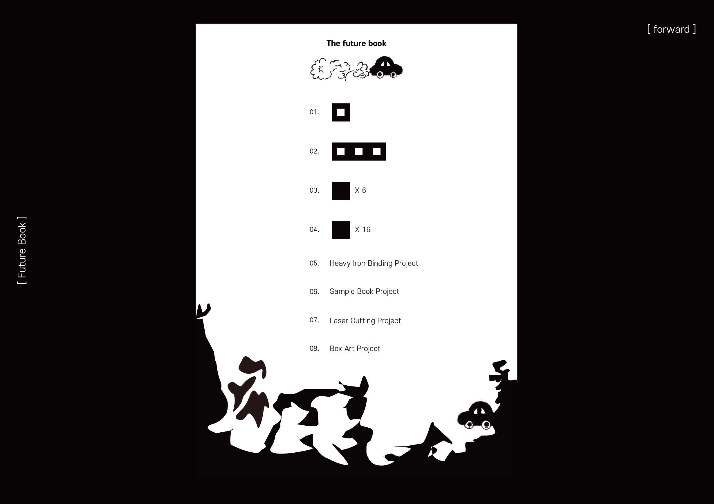 미래 책 작업을 하면서 저는 미래라는 의미를 단순히 미래지향이나 미래의 책의 형태라는 해석보다는 나의 미래 및 개발과 이동이라고 해석하며 작업을 하였습니다.