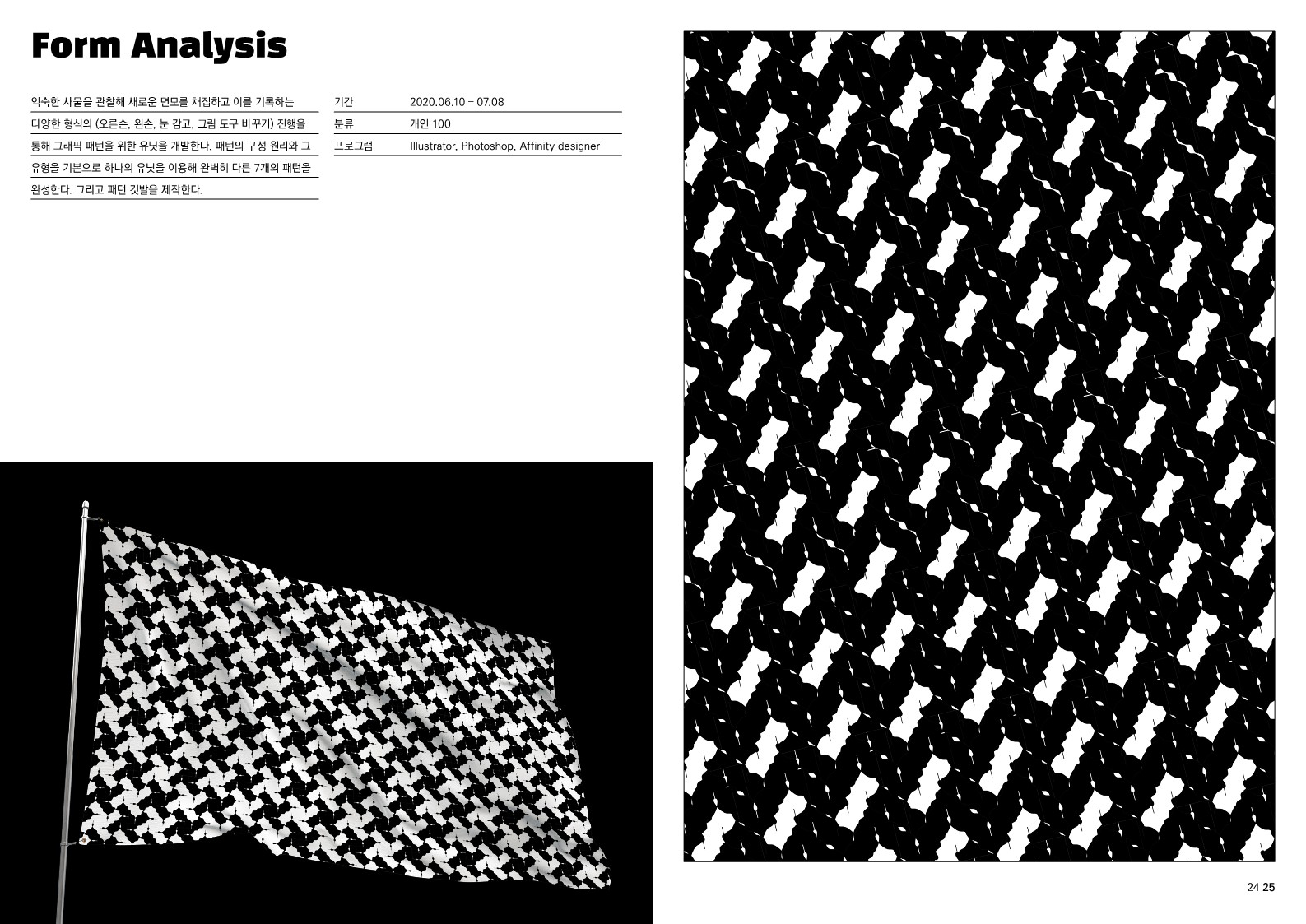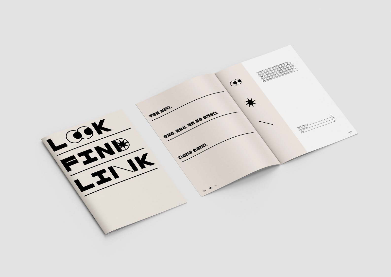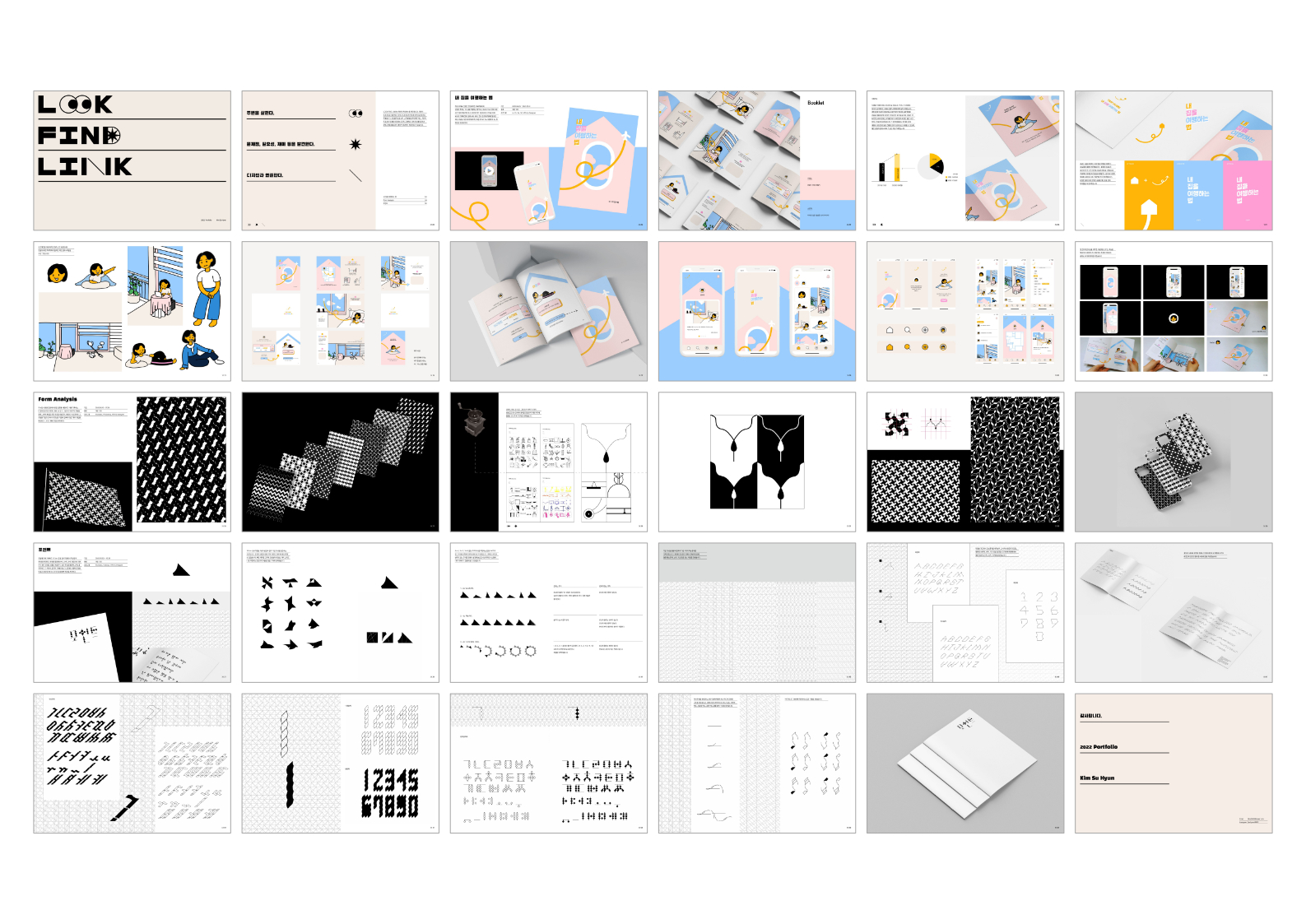 'Look Find Link'는 저의 포트폴리오 컨셉으로, 이는 저만의 디자인 프로세스를 3단계로 정의한 것입니다. 내용은 1, 2학년때 과제로 진행한 프로젝트 3가지로 구성했습니다. 최종 결과물로는 pdf와 웹 포트폴리오를 제작했으며, pdf 포트폴리오는 A4 세로형 판형으로 설정해 총 60p를, 웹 포트폴리오는 1개 프로젝트의 상세 페이지를 제작했습니다.