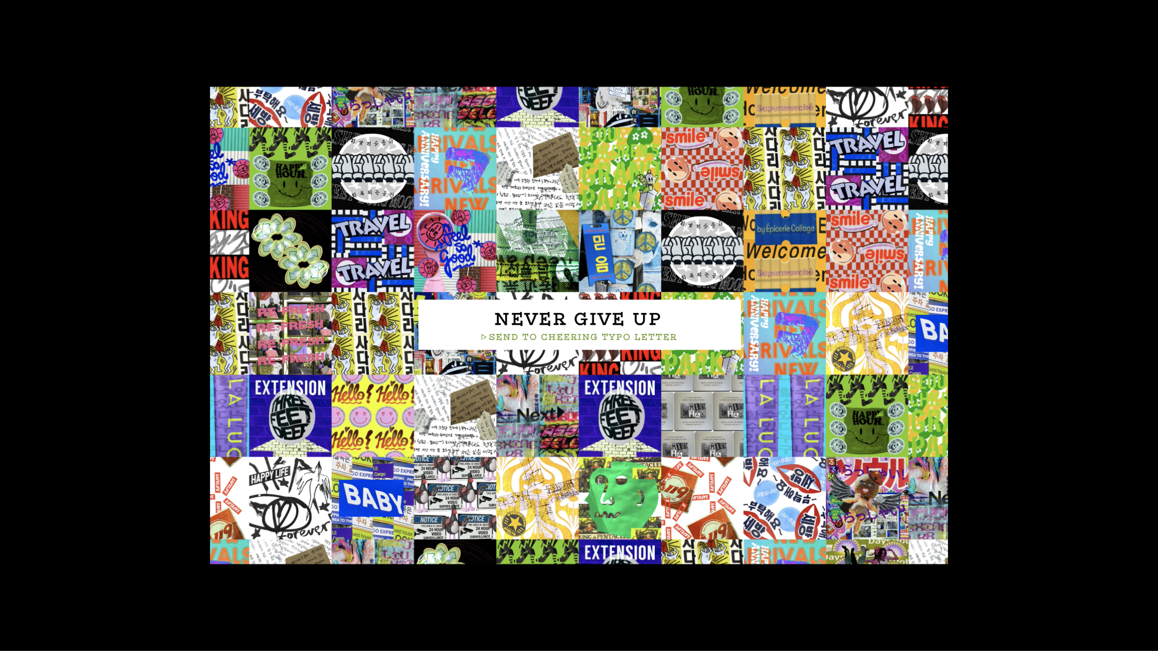 기존의 책에 있는 응원타이포그래픽들을 연결하여 편지로 추출하고, 직접 편지 작성을 한 후 원하는 대상에게 편지를 보낼 수 있는 웹사이트를 계획하였습니다.