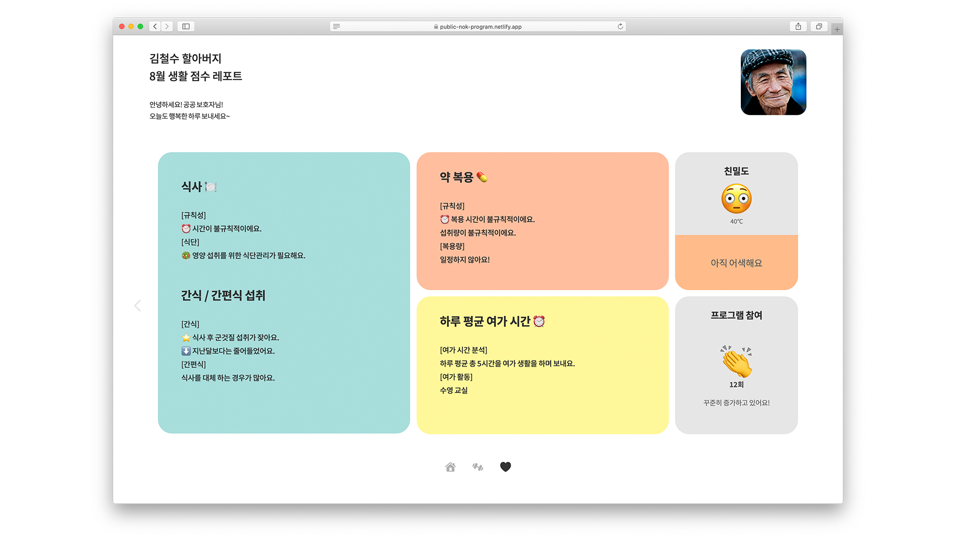 Public NOK Program은 과도한 업무에 지친 공공 보호자의 업무 효율을 높여줌과 동시에 더 세밀한 고령자 케어가 가능하도록 한다.