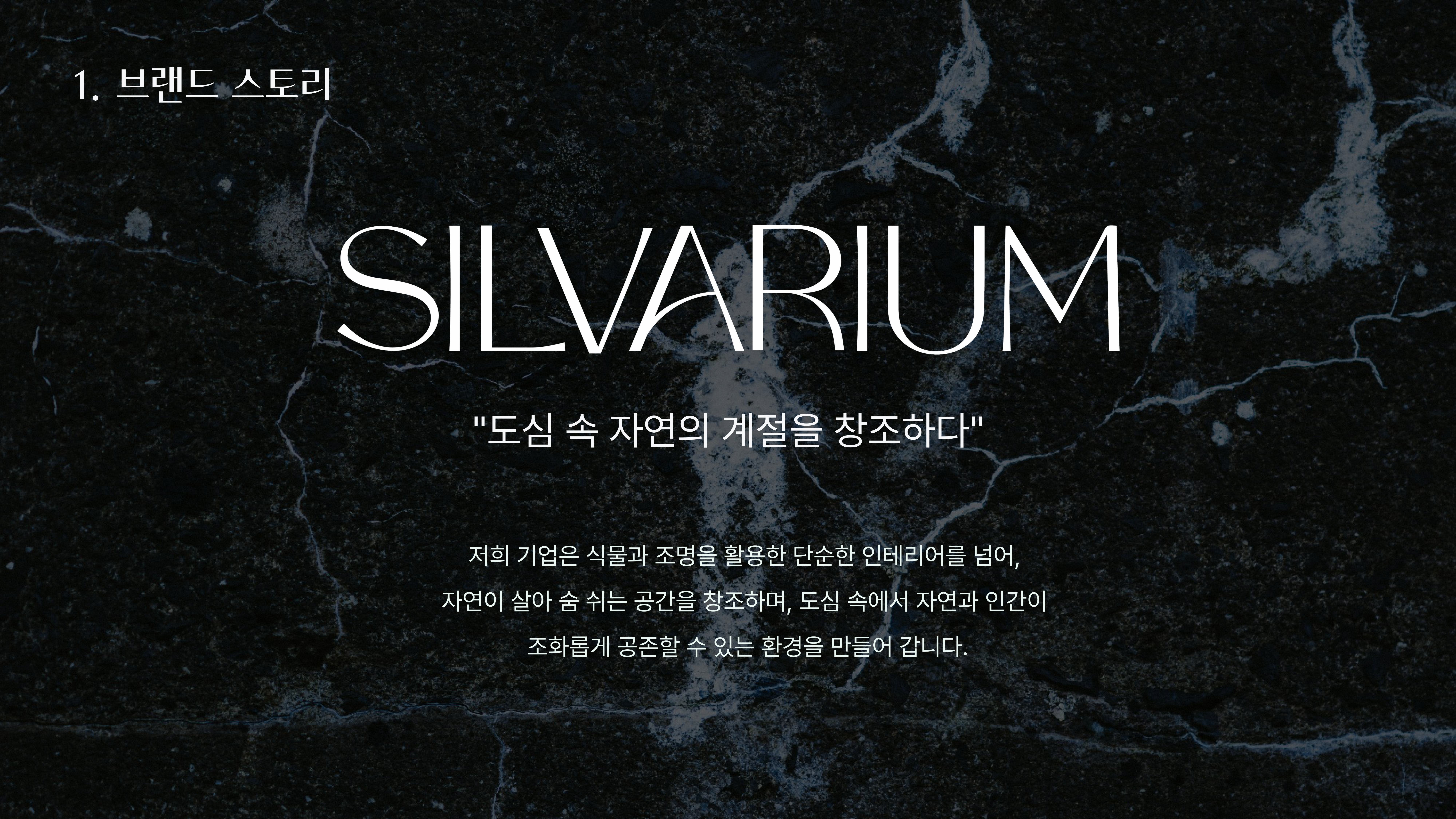 Silvarium은 실내에서 수목을 활용한 플랜테리어(Plant + Interior) 인테리어를 전문으로 하는 미래지향적인 브랜드입니다. 이 기업은 단순히 공간을 꾸미는 것을 넘어, 자연이 깃들고 살아 숨 쉬는 환경을 창조하는 데 초점을 맞추고 있습니다.