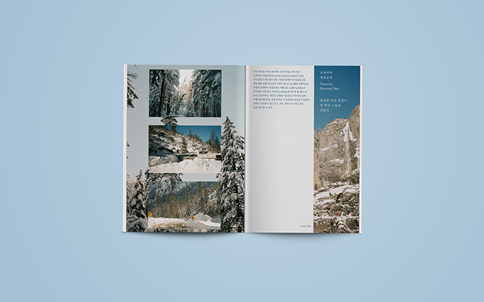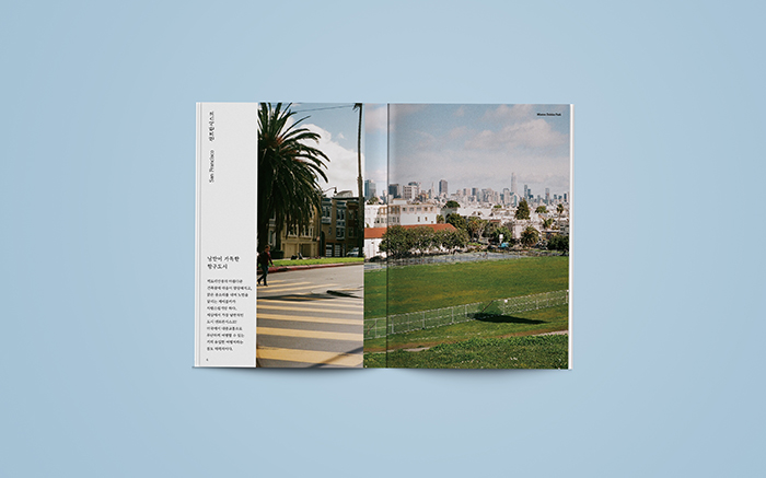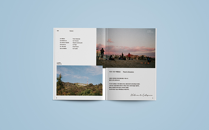 2019년 2월, 미국 캘리포니아를 여행하며 직접 촬영한 필름사진을 중심으로 미국 서부여행에 대한 팁과 정보를 담은 매거진이다. 웹에서는 캘리포니아 필름사진들을 한 눈에 모아볼 수 있고, 이미지를 클릭하면 사진 속 여행지에 대한 정보를 확인할 수 있다. 언제 다시금 여행의 자유를 되찾을 수 있을지 몰라 답답한 현재, 온라인으로나마 여행 기분을 느끼고 여행의 향수를 떠올릴 수 있다.