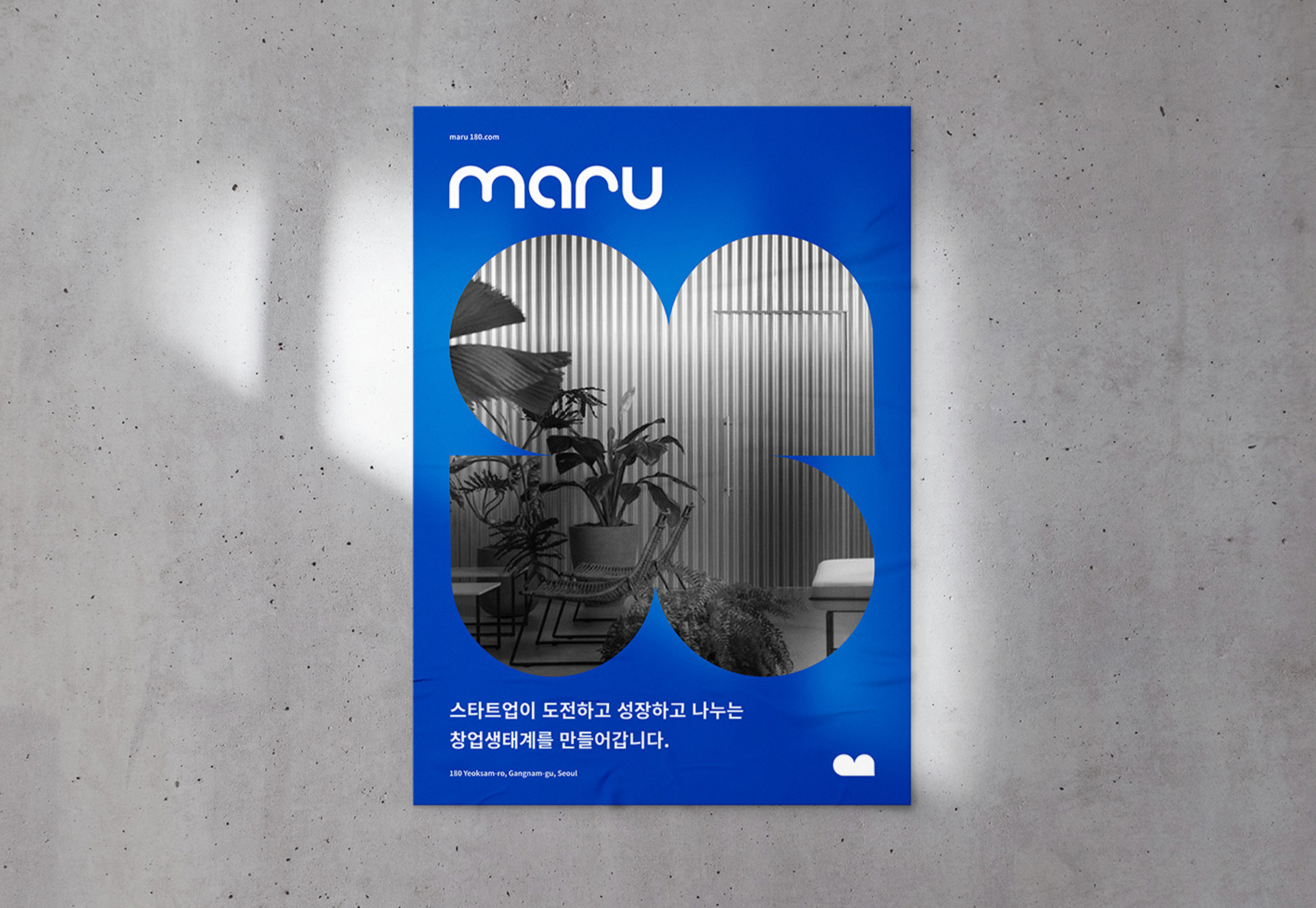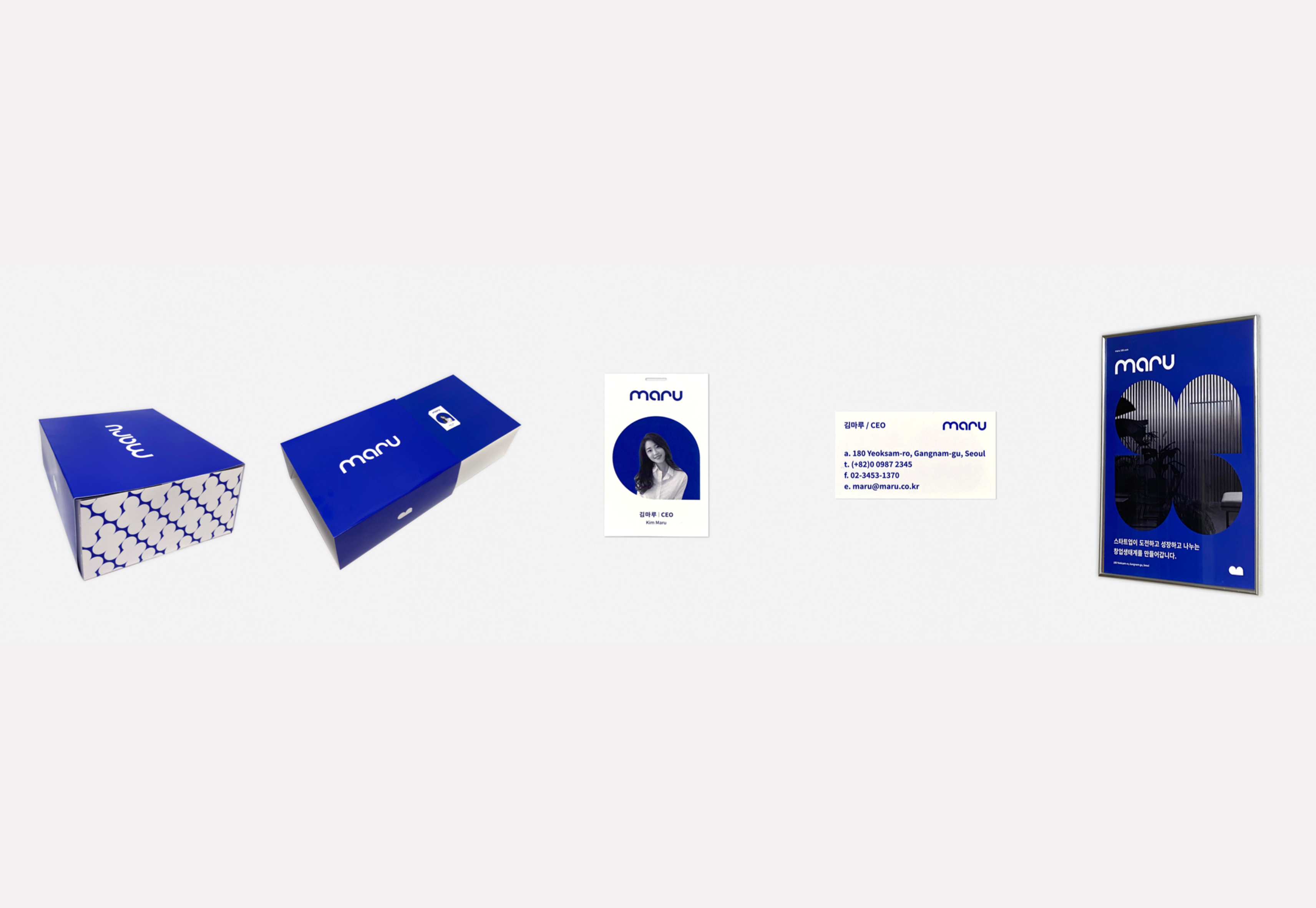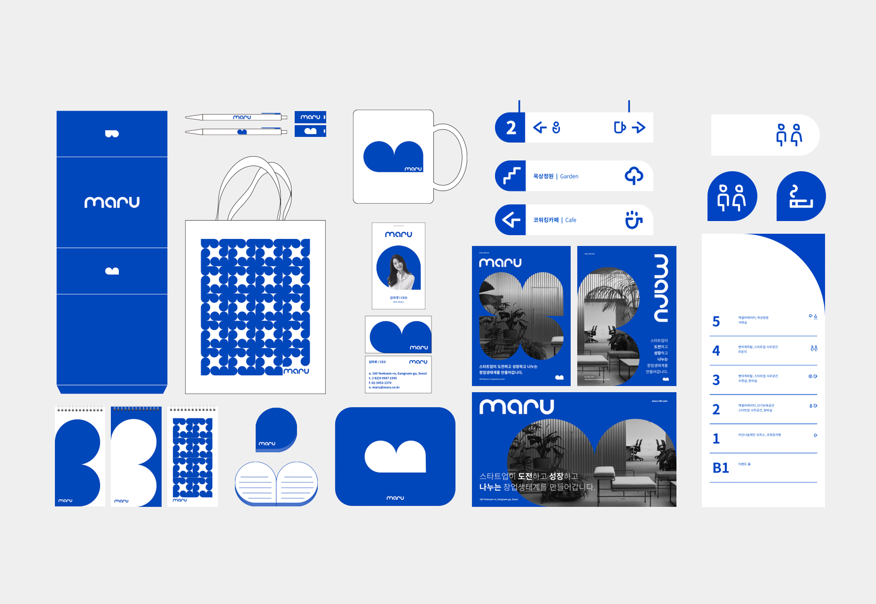 청년 창업가에게 필요한 통합적 솔루션을 제공하는 창업지원센터 마루를 '시작의 발판이자 동등한 대화의 장'이라는 브랜드 메세지를 정해 연결, 소통, 공간, 볼드한 네가지 키워드로 자유로운 소통이 가능한 편안한 공간을 나타내는 로고와 심볼을 사용하여 새롭게 웰컴키트를 리브랜딩하였다.