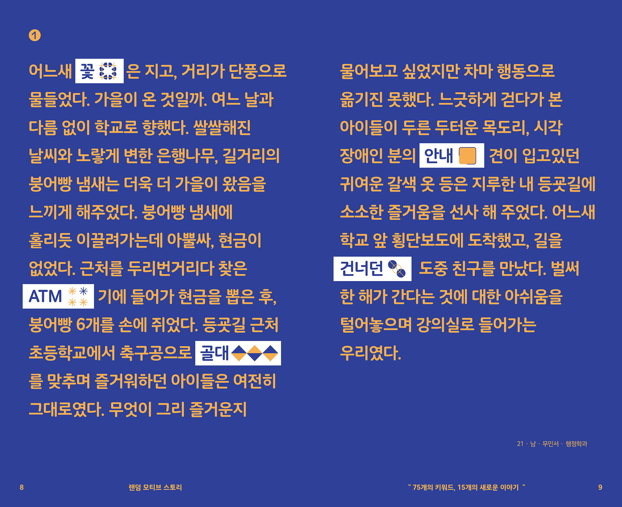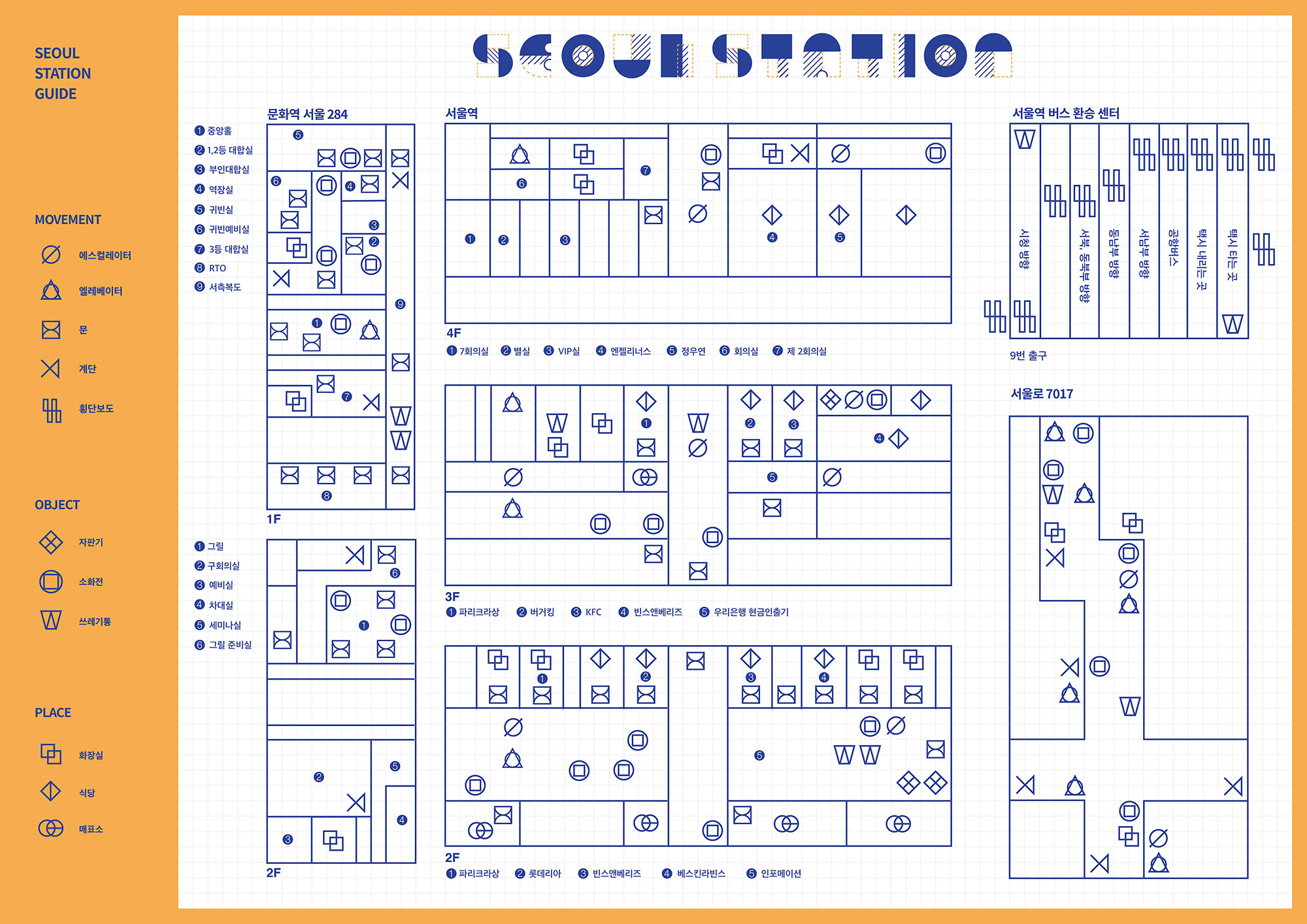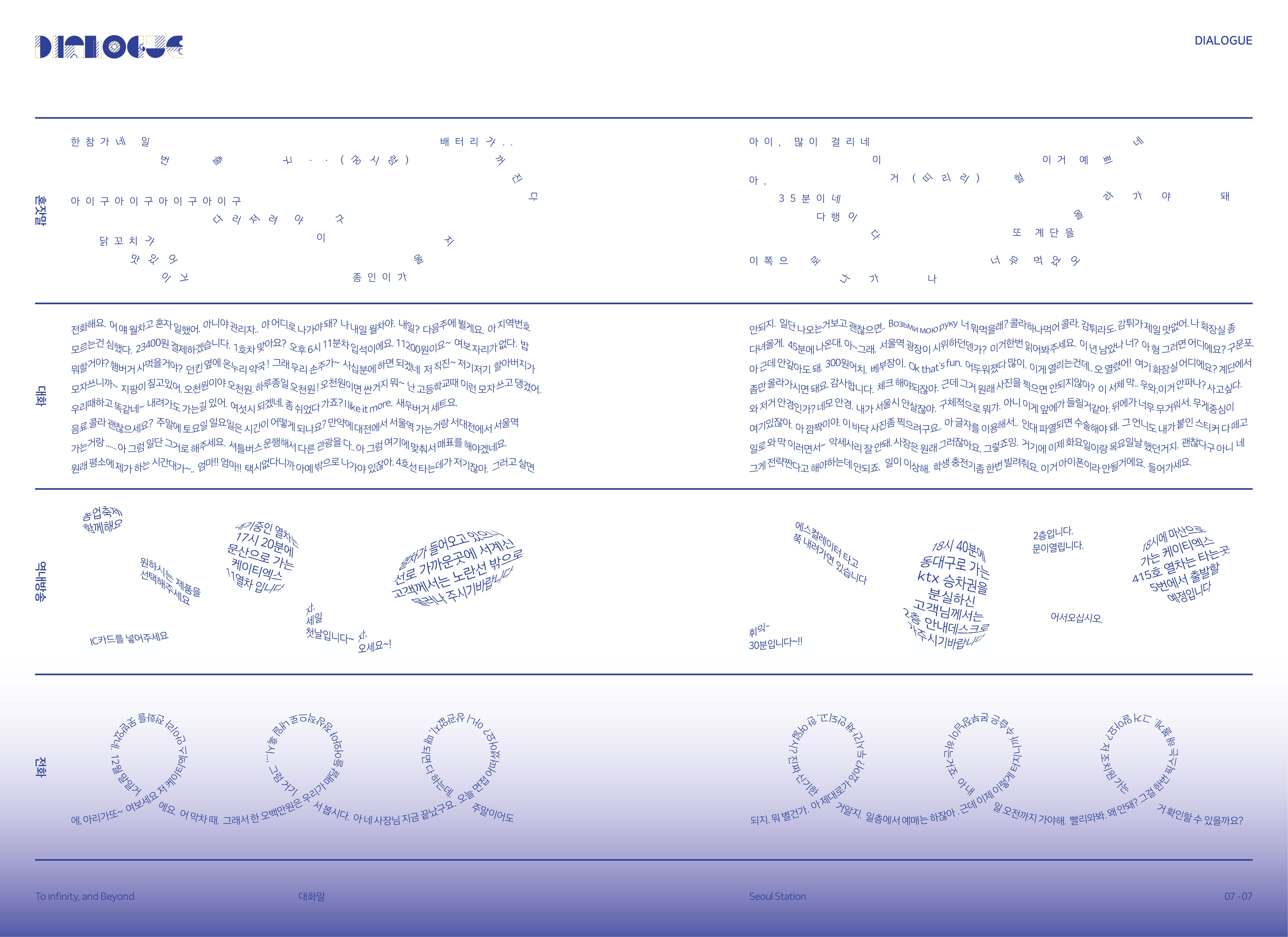‘서울역, 버스환승센터, 문화역284, 서울로’ 을 재해석하여 새로운 정의를 내렸다. 무심코 지나쳤던 주변 사람들의 말소리와 사물 그리고 바닥들에 집중했고 사람과 공간 그리고 사물들 안에서 보여지는 재미있는 관계를 발견했다. 사전적 정의의 서울역과, 재해석된 서울역의 이면들을 볼 수 있다.