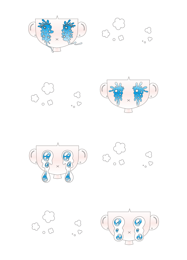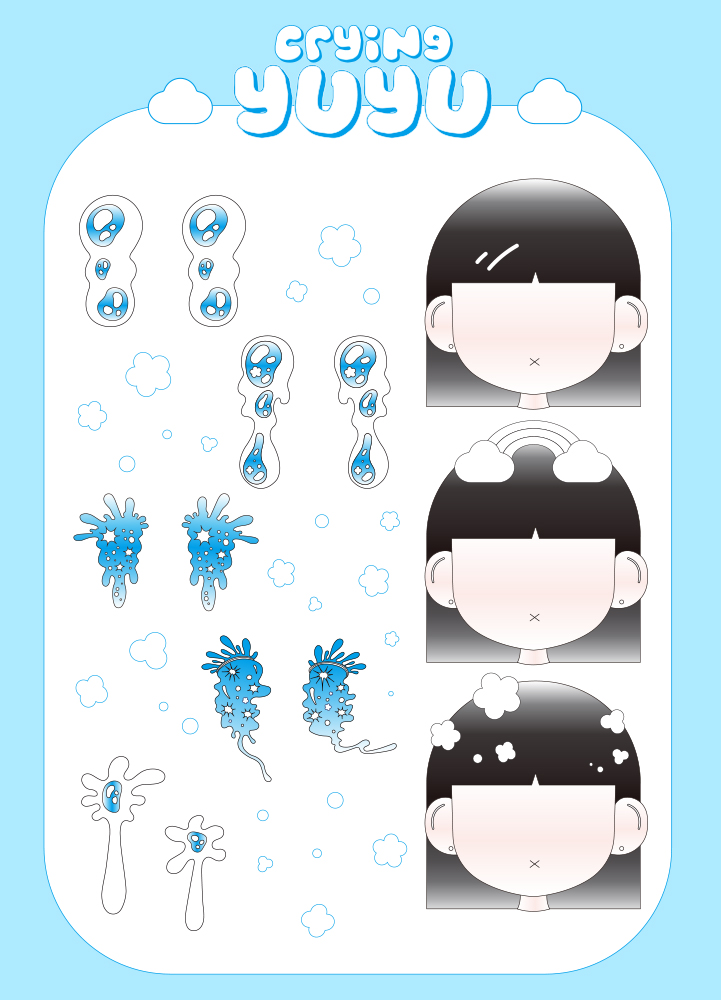 어릴 때의 안 좋았던 기억을 미학적으로 재구성한다면 좋은 추억으로 기억되지 않을까? 하는 물음에서 출발했다. 그렇기에 모든 캐릭터는 울고 있지만 꽃과 반짝이는 개체, 밝은 파스텔톤 색감을 이용해 누구보다도 아름다운 모습이다. 우는 이모티콘인 ‘ㅠㅠ’에서 착안해 crying yuyu의 브랜드 네임이 만들어졌다. 나영서 neonnite22@naver.com crying.yuyu
