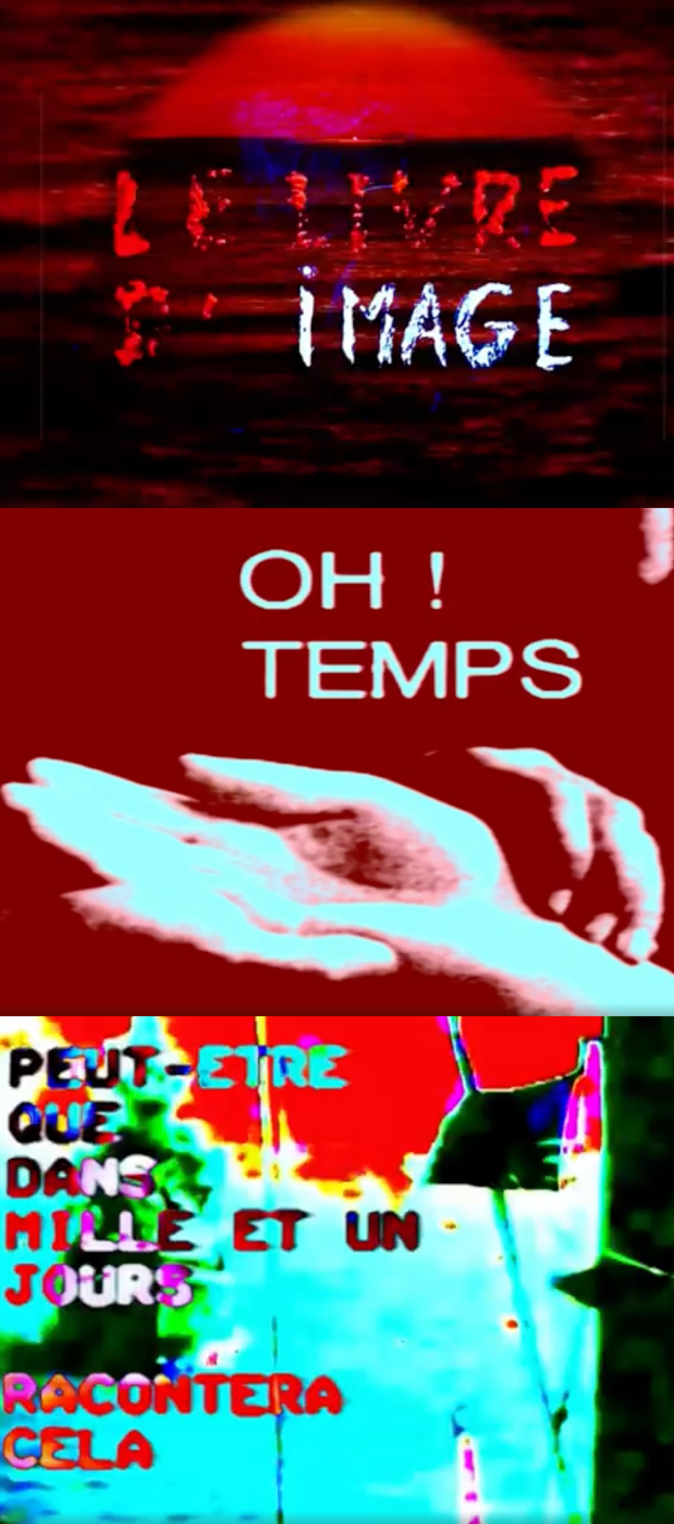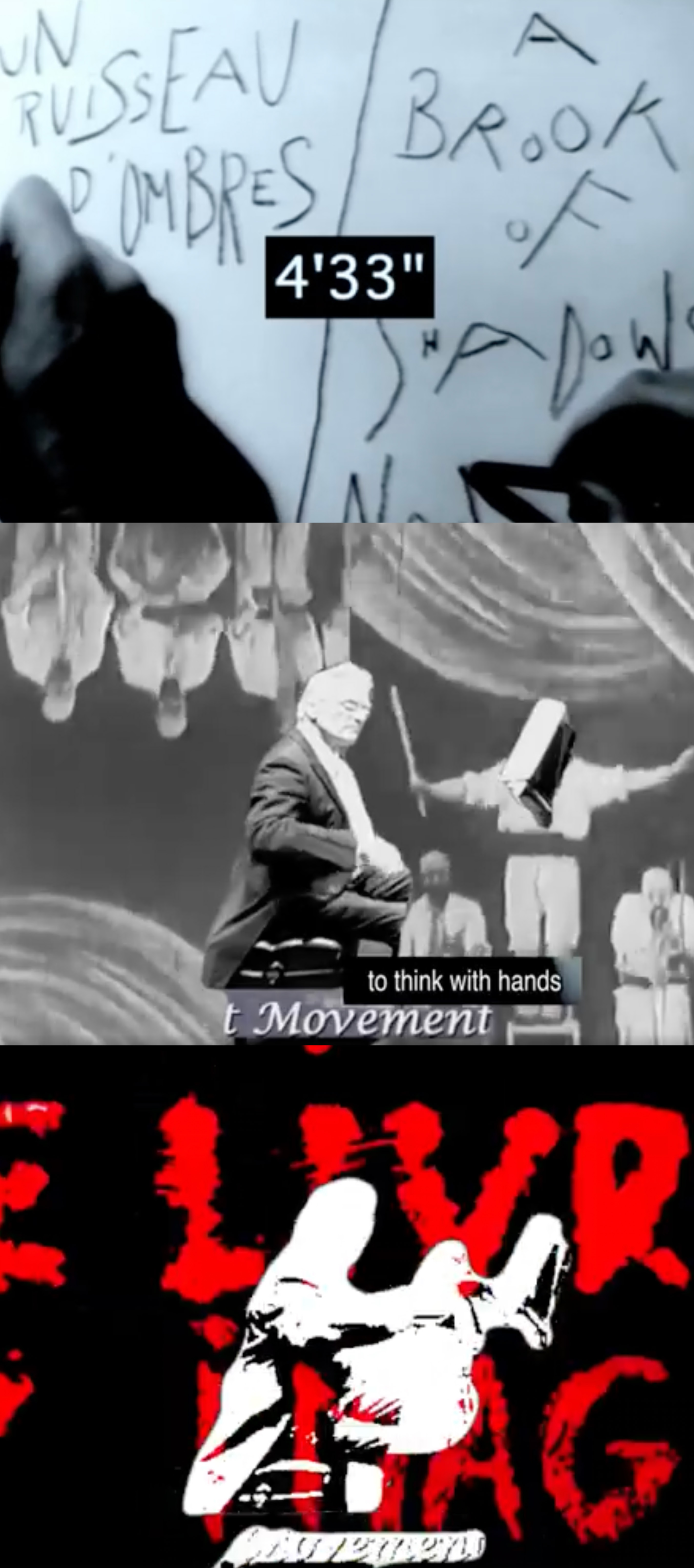 차용되어, (지면-포스터, A4) 장 뤽 고다르 감독의 작품 〈The Image Book, Le livre d' image〉, 2018 의 장치—이미지 콜라주와 해체된 소리—를 차용하였다. 만들어진 타이포그래피와 절제되고 생략된 이미지는 들려오는 청각보다 보이는 시각적 소리의 질감으로써 인식된다. 더 발전된, (디지털-영상, 2:38) 텍스트 이전의 꿈과 같은 시각적인 이미지, 방대하지만 폭력을 조성하는 텍스트의 무책임한 태도와 같은... 히스테릭하게 연결된 것들을, 무성영화를 빌려 즉흥으로 흘려보내고자 했다. 1. 4:33 2. VIENDRA 3. NO paradise 장수미 @ilysbreath HTML 삽입 미리보기할 수 없는 소스