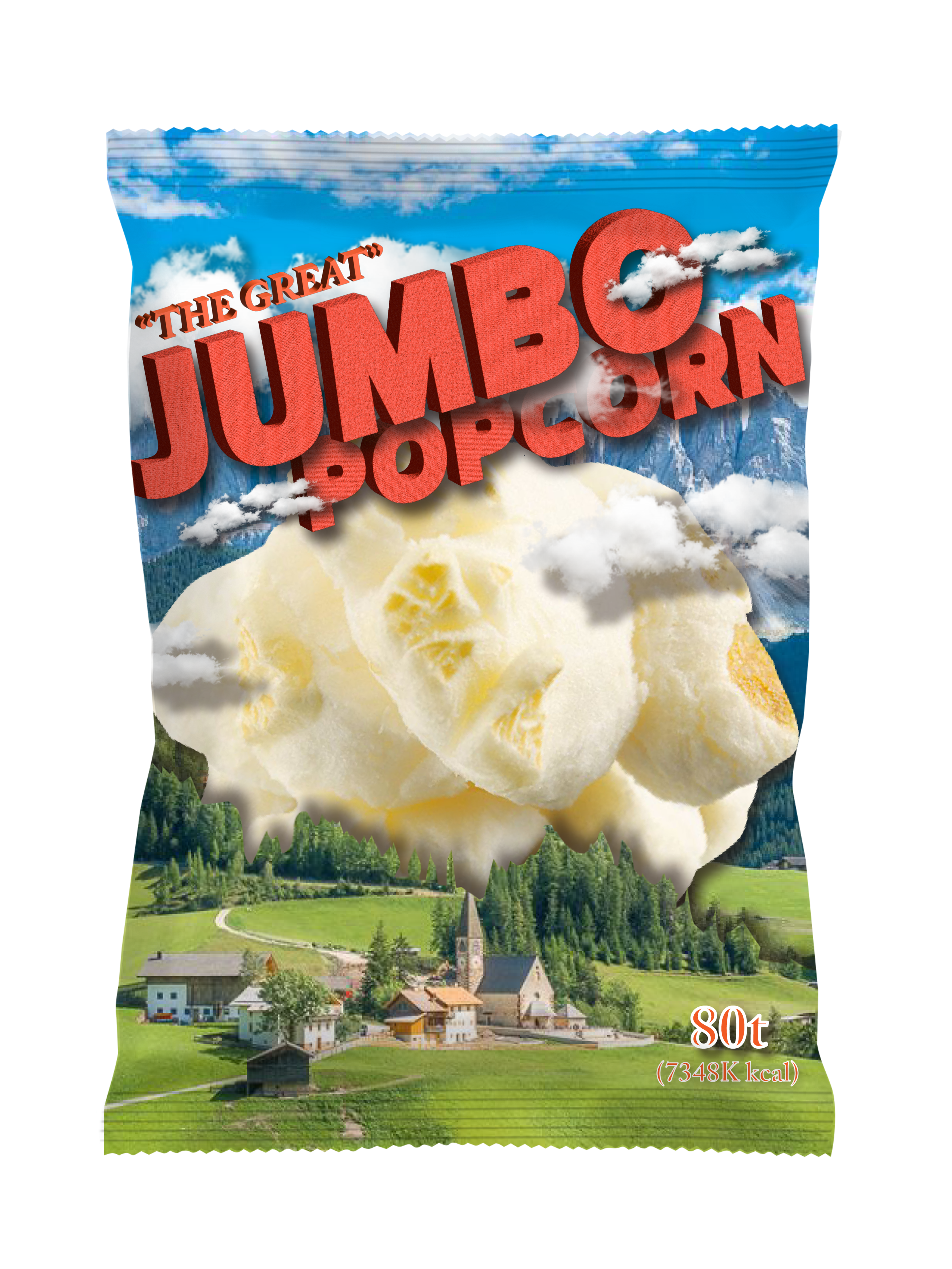일반적인 팝콘을 상상한다면 영화관에서 흔히 볼 수 있는 빨간색 종이 박스 안에 가득 담긴 팝콘들을 생각하게 될 것이다. 그 안에 담긴 작은 크기의 팝콘들을 계속 집어 먹는 것은 귀찮고 또 영화에 방해되는 일이다. "THE GREAT" JUMBO POPCORN, "대왕" 점보 팝콘은 단 한 알로도 충분히 포만감을 느낄 수 있어 영화를 즐길 수 있게 해주는 제품을 상상한 것이다. 김제용 jeejeeyooyoo@gmail.com jejejeyoyoyo